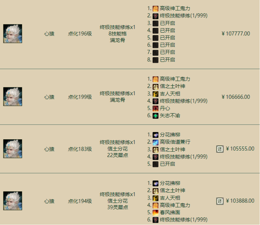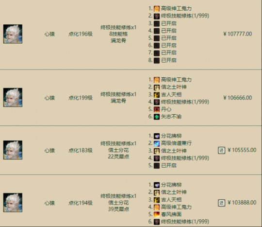 前段时间,问号心猿的身价一度上涨到8万元,而如今再次出现变化!一万购入护身符转手卖八万,这不是捡漏!忽视22强混6.3,这把高级武器竟比五阶仙器还强!烧香悟终极,就是这只宝宝有点不对劲?地宫积分换神兵,接连爆出震撼消息! 兄弟们好!今天的大话新鲜事栏目准时奉上,一起来欣赏其中的精彩内容吧! 一、问号心猿价格再次波动! 近日,召唤兽心猿身价再度出现变化,在其成交价上涨到8万元后,就有玩家不断猜测讨论,不知这家伙的价格还会不会继续上涨呢? 心猿最新价格 几月前的价格 几个月前,问号心猿的价格最高为8.8万,而如今已经涨到接近11万,并且还有小幅上涨的趋势,兄弟们不妨预估一波,猜猜这只宝宝的身价最终能稳定到多少? 二、一万买入转手卖八万,这不是捡漏! 1.1万购入护身符,转手竟卖出八万块?而且这并不是捡漏,究其原因,竟是一个种族正在崛起的证明! 购买信息 自神豪盖总前段时间买了原始皇的底子号、接着开始打造毒女人后,毒女人的极品装备价格也是水涨船高,这枚护身符的底子提供四抗上限,绿字强力克火和加强毒伤害,而且还带有曼陀罗特技,怪不得能卖出如此高价! 三、比五阶还强的十六级武器! 一把十六级龙渊,竟有人说它的属性比五阶还要强?咱们一起来欣赏! 武器全貌 底子忽视混7.2,蓝字强混0.3,炼化忽视混10、加强混6,炼器忽视混5,这炼器确实非常少见,那么大家觉得,这把武器真的比五阶更强吗? 四、烧香悟技能,但宝宝没带对? 烧香领悟终极,但就是这只宝宝有点不对劲,不知道号主看到后会是怎样的心情? 野狗 这......烧香给野狗领悟出问号,感觉好像被几率了,但好像又没有? 五、地宫积分连续出藕丝! 地宫积分换神兵时,竟连续换到藕丝步云履,这是什么情况,系统卡了吗? 系统消息 藕丝步云履 号主自己都很惊讶,玩大话这么多年,第一次被几率藕丝,而且还是一下来两双,这幸福真是太突然了,今晚必须好好犒劳一下! 今天的大话新鲜事就到这里了,感谢pain、阿坤、灵颜、厚土、筱筱芒果等玩家们的热心投稿,小伙伴们如果在游戏内外碰见任何有意思的事情,都可以给我们投稿哦! [编辑:478dyuu]