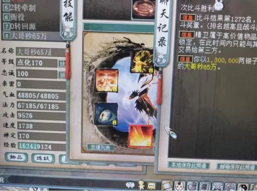 江湖惊现顶级灵宝,据说是当年原始皇遗留之物?这把武器号称“全服第一大力仙器”,兄弟们觉得呢?一嗓子下去,喊出两个神出鬼没?100万也算实惠的价格,这宝石真的这么值钱吗?又捡漏了,130万大话币买到极品召唤兽! 老铁们好!今天的大话新鲜事栏目准时奉上,一起来欣赏其中的精彩内容吧! 一、原始皇遗留之物,顶级灵宝金箍儿! 下面这枚顶级灵宝,据说是当年原始皇留下的,如今再次现身阁子,卖价高达56万之多! 金箍儿 天赋技能:招魂+高级抵抗,速度3846、活跃6449、抗落宝92.3,技能:三人合技精神错乱、三人合技乾坤遮天、四人合技乾坤遮天,大家觉得这个价值不值呢? 二、此仙器,号称“全服第一大力神物”! 有不少老铁说,下面这把武器算是全服第一的大力克水武器?还没见过的兄弟快快来围观! 红尘全貌 武器底子克水33.5、蓝字炼化克水27.5、炼器克水24.3,其实极限克接近90的仙魔武器并不罕见,但是在大力武器当中,克水85应该是找不出第二把啦! 三、一嗓子喊出两个神出! 今天是个好日子啊,玩家进园子悟技能,直接一嗓子喊出两个神出鬼没,一起来看看怎么回事? 系统消息 系统消息 给网吧的小伙捐助泡面?这下泡面是要吃撑的节奏吧? 四、什么档次,说百万现金也算实惠价? 100万现金也算实惠的价格?这颗宝石真的这么值钱吗,还是系统的描述有些“不合时宜”? 系统消息 “某人以实惠的价格,购买了价值100万的宝石”,虽然看不到这颗石头的属性,但如此高昂的价格,怎么也和实惠两个字扯不上关系吧...... 五、130万大话币买极品召唤兽! 捡漏神话再度出现!玩家在集市逛街时,花130万游戏币买到一只四开精卫,这是少按了几个零啊? 精卫全貌 一只四开精卫,带克火、吉人、小当,以130万大话币的价格出售,感觉是少打了整整两个0吧?难道是喝假酒了? 今天的大话新鲜事就到这里了,感谢疯子、高秀明、郁闷、空瞳等玩家们的热心投稿,小伙伴们如果在游戏内外碰见任何有意思的事情,都可以给我们投稿哦! [编辑:462ichja]