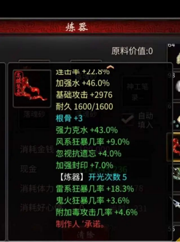 前些天出炉的双终极年,现在已修出化无+绝境!1100灵性的水法大炮,属性相当炸裂!花一百万买了两只年,转手亏了这么多?月光爱人出吉祥果,玩家的名字亮了!老铁炼化出两把极品武器,一把“卧龙”,一把“凤雏”? 兄弟们好!今天的大话新鲜事栏目准时奉上,一起来欣赏其中的精彩内容吧! 一、第二只双终极年毕业! 全服第二只双终极年修炼毕业,第一只是盖子老板的,第二只也是盖子老板的,巧不巧? 化无绝境年 化无绝境年,一共修炼了7手,最终成功毕业,恭喜大佬! 二、水法大炮秀极品属性! 1100灵性的水法大炮,今日展示出了自己的属性,这图是有月光、无帮派强法得数据,一起来欣赏! 属性展示 198级大炮,1100灵性40万法、速度1543、克水399.5、加强水118.3、忽视水99.4,水系狂暴几率63.9,程度星卡貌似没满级,但这样的属性已经相当炸裂了! 三、一百万买了两只年,转手亏还是赚? 下面这位大佬正在出售自己的两只终极年,据本人说,这两只宝宝是花一百万买来的,而现在卖出的价格是多少呢? 寄售信息 售出价格为46万一只,总共亏了8万,不过这种幅度的物价升降都算正常,说不定同时购买的其他物资有涨呢! 四、论起名字的重要性! 纵马横刀服务器老铁,在月光爱人中喜获吉祥果,而且这位玩家的名字也亮了,一起来看看! 系统消息 “王姨送果子”守护信物有功,婵娟使感动之余,将吉祥果相赠,老铁这名字没白起,恭喜!恭喜! 五、卧龙凤雏再现? 这位老铁炼化的两把武器,没想到同时炼出“卧龙”“凤雏”极品属性,什么情况? 一把“卧龙” 一把“凤雏” 第一把男人忽视混7.0底子武器,炼出忽视冰10,忽视风武器,炼器炼器炼出雷系狂暴几率18,还真是”卧龙“”凤雏“同时登场啊! 今天的大话新鲜事就到这里了,感谢我习惯笑、惊雷、李大胖、?宏信五金、落霞孤鹜齐飞等玩家们的热心投稿,小伙伴们如果在游戏内外碰见任何有意思的事情,都可以给我们投稿哦! [编辑:983hcue]