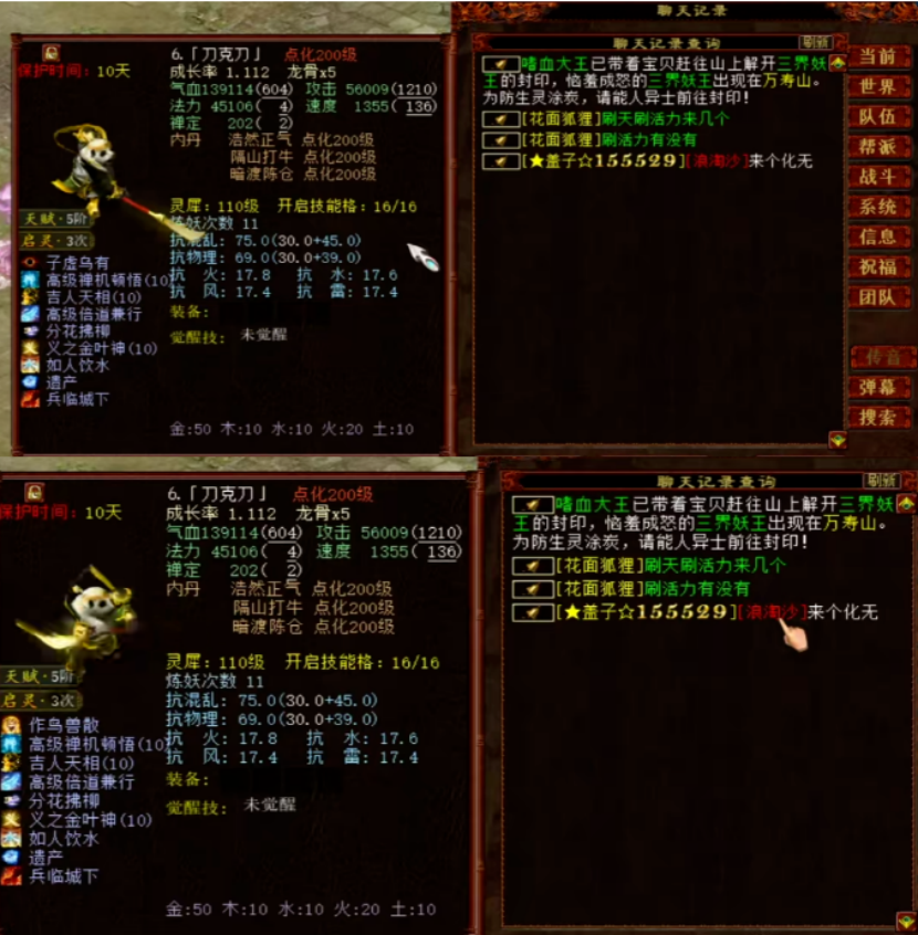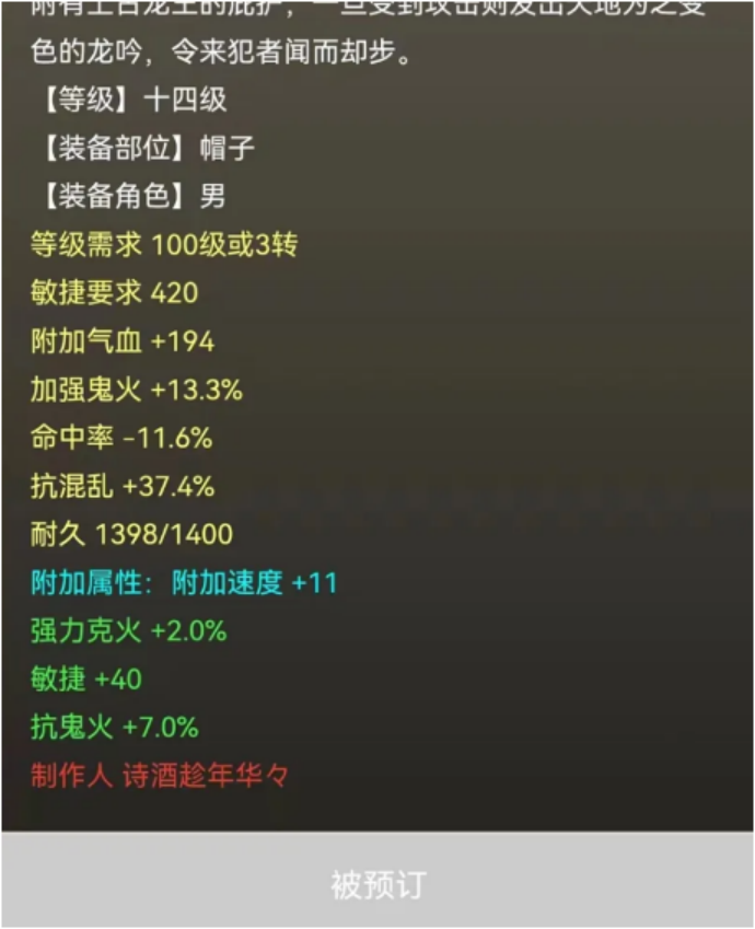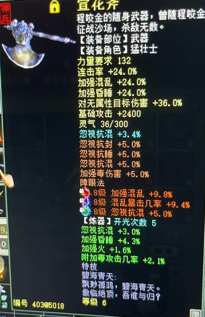 六级混神兵的天花板,还有比这属性更好的吗?标价89000元的14级高装帽子,现已被预定!要不要这么夸张,杀这货需要四只圣猿吗?盖子没事又给浪淘沙吃终极了,看结果!一枚高级敏捷+低级挣扎带伤害9的镜子,2700元刚上藏宝阁直接被秒,这是卖亏了? 兄弟们好!今天的大话新鲜事栏目准时奉上,一起来欣赏其中的精彩内容吧! 一、这把武器算不算全服唯一? 下面这把男人混神兵,算不算全服唯一?感觉已经达到六级神兵的天花板了,还有比这属性更好的吗? 宣花斧 六级神兵宣花斧,黄字属性加强混乱24、加强昏睡24,蓝字炼化忽视混3.4,炼器忽视混3、加强睡4.3,三颗八级石头,总体加强混33.8,忽视混16.4,这数据简直无敌了! 二、八万九的帽子上架被预定! 十四级帽子,底子抗混37.4,不强震慑,但蓝字+炼化综合敏速高达51,目前被人以8.9万元的高价预定,算上800元预定费,几乎就是9万元整了,一起来欣赏! 帽子全貌 这种底子抗+高敏的装备得以成交,也算是代表着顶级男魔市场的风向标了吧?看来应该是玩男魔的大佬越来越多了! 三、这五环阵容真炸裂! 太炸裂了,要不要这么夸张,杀这个货需要用四只圣猿吗?一起来看看到底什么情况? 五环战斗 跑个5环,一只圣猿应该就可以搞定了吧,但他带着4只圣猿和一头年,对面两头怪瑟瑟发抖:大佬没这个必要啊...... 四、盖子又来重修终极! 盖子老板近日又给浪淘沙吃终极了,总共就修了两手,来看看最终修出了哪个终极技能! 作鸟浪淘沙 这是个单挑男人号,第一次修出“子虚乌有”,第二次修出“作鸟兽散”,看来目标应该是化无了,祝大佬早日如愿以偿吧! 五、2700的乾元镜,貌似卖亏了? 地界九州鼎盛服务器,一枚高级敏捷+低级挣扎带伤害9的镜子,2700元上架藏宝阁后直接被秒,莫非是卖亏了? 藏宝阁信息 九州鼎盛服务器是去年9月底开区,11个月不到,属于不可移民服务器,四下服务器传世10开得接近4000元,参考一年半-四年以下区的价格,然后乘以个1.2-1.5倍,感觉应该卖3800-4200才对? 今天的大话新鲜事就到这里了,感谢大狗、诗酒趁年华、钱兔不可限量、一战成名、木子李li等玩家们的热心投稿,小伙伴们如果在游戏内外碰见任何有意思的事情,都可以给我们投稿哦! [编辑:093duie]