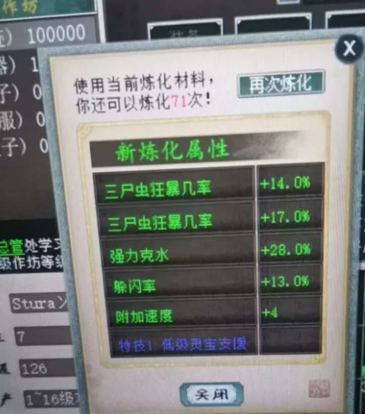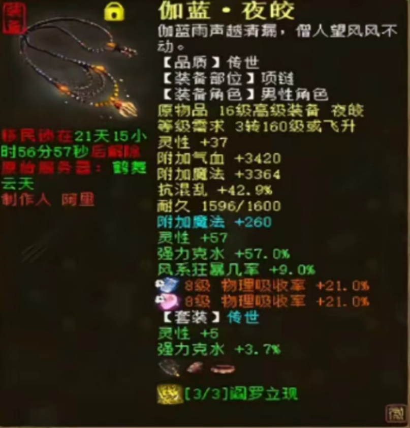 传说中的大话第一风法项链,近日被他成功拿下!一亿亲密的圣猿亮相,且看天生技能效果如何?蓝字忽视冰项链,炼化让人泪奔的极品属性!刚点化成功的兰亭,升级开技能格现场!盖子又在帮派发福利,这次跟运气有关? 老铁们好!今天的大话新鲜事栏目准时奉上,一起来欣赏其中的精彩内容吧! 一、第一风法项链被他买走! 大神“文同学”今日壕气出手,成功拿下传说中的大话第一风法项链,咱们先看文同学的面板数据,再看这条项链的全貌! 属性展示 项链全貌 这条风法项链的原主人为“本先生”,底子灵性37、抗混42.9,炼化灵性57、克水57、风系狂暴几率9,套装炼化也非常给力,灵性5、克水3.7,几乎每条属性都堪称完美,说是全服第一可有争议? 二、一亿亲密圣猿亮相! 超过一亿亲密的圣猿首次亮相,起的名字也非常有趣,叫做“虎先锋何在”,估计虎先锋也扛不住它一棒吧? 1亿亲密 技能效果几率 这只圣猿来自玩家“火柴”,重点看一下天生技能“大圣神通”的效果如何吧,共有44.3%的几率触发分身、47.3%触发神通,兄弟们觉得一棒下去威力如何? 三、蓝字忽视冰项链,炼出泪奔属性! 玩家本想给自己的项链炼化忽视冰4,结果却炼出让他泪奔的极品属性,怎么办,要不要洗掉继续呢?在线等! 炼化过程 项链全貌 十二级项链,底子根骨20、抗遗忘28.5,蓝字忽视冰1.1,炼化克水28、三尸狂暴几率31、躲闪13,特技低级灵宝支援,这项链底子也就600-800元左右,男鬼极品炼化也能卖到800,问题是这个低级灵宝支援特技,溢价增值空间有多大呢? 四、兰亭点化开格子现场! 刚刚点化成功的兰亭,直接就来升级开技能格啦,咱们看看这家伙到底是铁还是水! 点化0继兰亭 飞升169 点化0级的兰亭,吃珍兽丹升级到169级,结果一个技能格都没开,这铁得有点夸张吧...... 五、盖子帮派送福利,据说和运气有关? 近日盖子又在帮派发福利啦,听说这次还跟运气有关?一起来看看什么情况! 四级藕丝 原来是盖子正在冲藕丝,开冲前用铃铛喊话称,如果成功冲到四级的话就送出去,结果真的上了四级,帮派的兄弟们有福啦! 今天的大话新鲜事就到这里了,感谢精神小虎、小优、郑韩君上、师傅:马保国、一战成名等玩家们的热心投稿,小伙伴们如果在游戏内外碰见任何有意思的事情,都可以给我们投稿哦! [编辑:30kor]