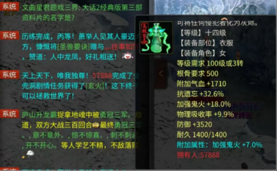 传说中的六扇门传人,一人拥有六把六阶扇子,兄弟们见过吗?最新区抽出一只心猿,爆赚时刻爽翻天!忽混3炼化卖了好几千,买家是不是看错数值了?修炼终极技能五连发,终于苦尽甘来!过剧情成为获得一件强鬼火25的衣服,圆梦了! 老铁们好!今天的大话新鲜事栏目准时奉上,一起来欣赏其中的精彩内容吧! 一、六扇门传人现身,白衣飘飘帅到爆! 原来他就是传说中的六扇门传人,一人竟拥有六把六阶扇子,还差一把就可以召唤神龙了? 装备栏展示 六阶寒骨冰 双特技6阶混武器 六把扇子,但大佬目前只展示了其中两把,没错,他就是大君队伍的男人-夜听风雨,期待他在这次巅峰赛中的表现! 二、新区抽到心猿,原地起飞! 新区抽出一只心猿,这是原地起飞的节奏啊,这东西在新区比神兽稀罕多了吧? 心猿展示 据玩家所说,这是用鸿运礼盒抽出来的,其价值就不用多说了,换神兽还是卖都随便啦! 三、这把武器竟卖了好几千? 这个忽混3炼化居然卖了好几千?买家是不是看错数值了,咱们一起帮他分析分析! 寄售信息 标价6400元的十六级武器,其底子为忽视混6.7,炼化忽视混3、加强混10,炼器忽视混3,总属性忽视混12.7、加强混10,直逼四阶仙器的性能,然而价格却远超后者,兄弟们觉得值么? 四、修炼终极技能,终于苦尽甘来? 来自傲雪凌霜服务器的玩家,近日修炼终极技能五连发,听说这波真的苦尽甘来啦?一起来看看他都修出了什么! 系统消息 系统消息 其实这并不是在同一天操作的,但也算是断断续续一系列吧,先是给去疾吃出绝境、作鸟、春回,然后分别给冰雪魔、冥灵妃子吃出化无终极,666! 五、全服至强鬼火衣服出炉! 玩家过称时,获得了一件底子强鬼火25的衣服,这算不算是全服最强的鬼火衣服了?一起来欣赏! 衣服展示 十四级衣服,底子加强鬼火18、抗遗忘32.6,蓝字属性加强鬼火7,加强鬼火高达25,整体属性却是非常之高,如果炼化毕业的话,兄弟们觉得这件衣服价值多少呢? 今天的大话新鲜事就到这里了,感谢小小七、盖世豪情、小强真郁闷、六道颜总、胭脂。、yoヾ等玩家们的热心投稿,小伙伴们如果在游戏内外碰见任何有意思的事情,都可以给我们投稿哦! [编辑:20djiw]
