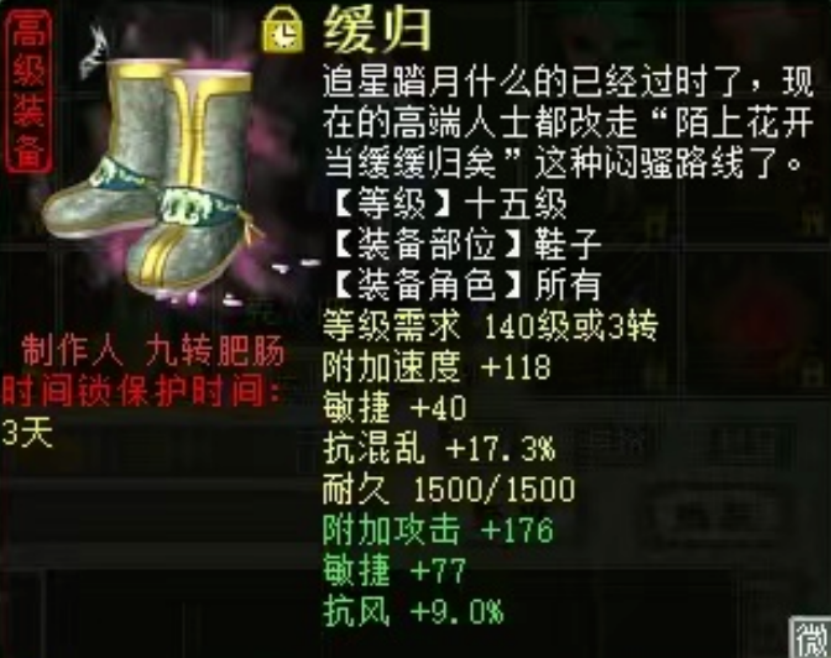 大事件!盖子三大主力号换人?糟糕,这只心猿变不了神兽了!他叫“内定得神兽年”,离奇遭遇令人羡慕!过剧情给了一条项链,蓝字忽视混亮了!才炼化出的一双敏鞋,堪比四级小藕丝! 兄弟们好!今天的大话新鲜事栏目准时奉上,一起来欣赏其中的精彩内容吧! 一、确切消息,盖子三个号换人! 最近江湖大事件频出,今日这则爆炸消息更是震天动地,据确切消息,盖子老板的三大主力号已经换人,一起来看看怎么回事? 男人号 男鬼号 女魔号 大家都以为是盖子只是换了名字,但其实这三个号已经易主了,昨天还在修终极范式,一觉醒来就换人了,太突然了!不知是哪位神秘大佬能一口气拿下三个号? 二、糟糕,这只心猿成不了圣? 成圣后的一念圣猿,才是心猿的最终归属,但下面这只心猿嘛,看来是变不了神兽了! 系统消息 玩家通过修罗战斗,给心猿领悟出一个化无终极技能,这还有啥说的,这辈子估计都成不了圣了! 三、他叫“内定得神兽年”,经历也蛮神奇! 这位兄弟给自己起了个奇葩名字,叫“内定得神兽年”,然而接下来的遭遇也非常符合这个名字,这不,他刚刚抓了几只宝宝,来看看都是什么! 系统消息 瞅瞅这名字起的,开局就能抓到一只狐小妖,也祝这位老铁有一天真的能收获神兽年! 四、剧情任务给的项链,无数人争相加好友! 玩家过剧情任务时,获得一条蓝字忽视混的项链,在得到这件装备的一瞬间,他的好友栏就被加爆了! 系统消息 十五级项链,底子根骨29、抗混38.5,蓝字忽视混1.1,这泼天的富贵说来就来,小编都看傻眼了! 五、此鞋堪比四级藕丝! 有兄弟刚刚炼化出一双敏鞋,整体属性堪比四级小藕丝,这手气也太好了吧,一起来欣赏! 鞋子全貌 十五级鞋子,底子附加速度118、敏捷40、抗混17.3,炼化敏捷77、抗风9,总敏速235,只比藕丝低那么一点点,太帅了! 今天的大话新鲜事就到这里了,感谢一战倾城、xy2冷尘、内定得神兽年、龙珠、大胖等玩家们的热心投稿,小伙伴们如果在游戏内外碰见任何有意思的事情,都可以给我们投稿哦! [编辑:120djit]