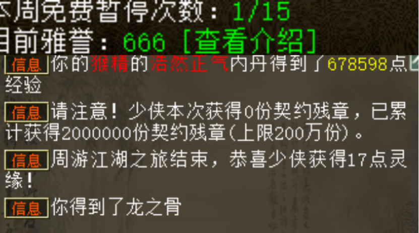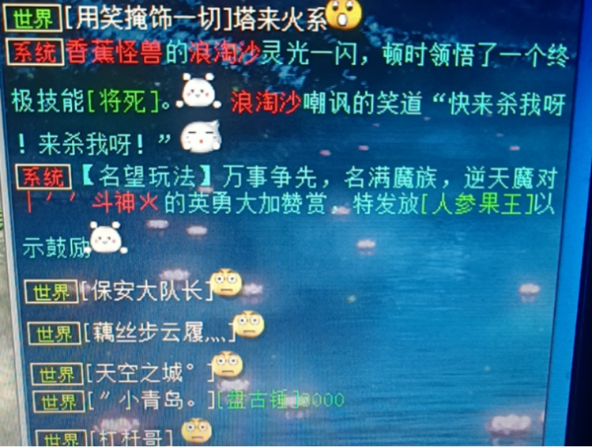 君临天下又准备搞大事了,这次准备的物资相当惊人!新区开服以来最贵的黄金兽,目前已售出!交付三百环任务,雅誉值666会给什么?灵光一闪,一只浪淘沙直接悟出终极!四级藕丝与补天神石的碰撞,会成功吗? 兄弟们好!今天的大话新鲜事栏目准时奉上,一起来欣赏其中的精彩内容吧! 一、君临天下大手笔准备物资,何时正式开干? 近日大君老板又准备搞事情了,这次的目标似乎是一只精卫,咱们来看看到底怎么回事? 双终极精卫 终极技能修炼丹 又一车终极丹 目前已经准备了一些终极修炼丹,或许是觉得还不够用,所以暂时还未开始,而据说本次的目标是化无加赫赫神威,咱们就期待大君能顺利修炼成功吧! 二、开服两月新区,黄金兽卖出八万! 不夜长安,今年最火爆的周年庆新区,目前开服仅仅两个多月,而区内的一只黄金兽,近日竟以八万元的天价成交?一起来看看! 售价消息 原本标价是10万元,最终成交价格则是8万,看来这个区的大佬土豪是真多啊! 三、三百环雅誉值666,会得什么奖励? 玩家交付三百环任务时,雅誉值恰好是666,看起来非常吉利啊,最终到底会给什么奖励呢? 系统消息 这么好的数字,怎么也要给把垫底神兵吧?结果一颗龙之骨就打发了,难受...... 四、灵光一闪,浪淘沙领悟终极! 平静的世界,陡然间灵光一闪,一只浪淘沙直接领悟出终极技能,这泼天的富贵挡都挡不住啊! 系统消息 这是来自四下区“牛转乾坤”某玩家的杰作,还是在修罗战斗直接领悟的,难怪世界频道一片#24的表情! 五、补天与四级藕丝的碰撞过程! 补天神石砸向四级藕丝,是石头碎裂,还是藕丝升华?咱们共同来见证! 四级藕丝 准备开砸 意料之中? 四级藕丝直接冲五,失败才是常态嘛,心疼老铁三秒钟,下次还是垫底比较稳妥一点! 今天的大话新鲜事就到这里了,感谢无名大兄弟、春晓、鑫天烁、奔 跑。、小优等玩家们的热心投稿,小伙伴们如果在游戏内外碰见任何有意思的事情,都可以给我们投稿哦! [编辑:109diwe]