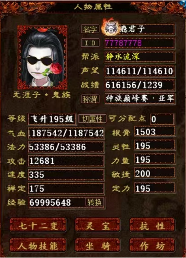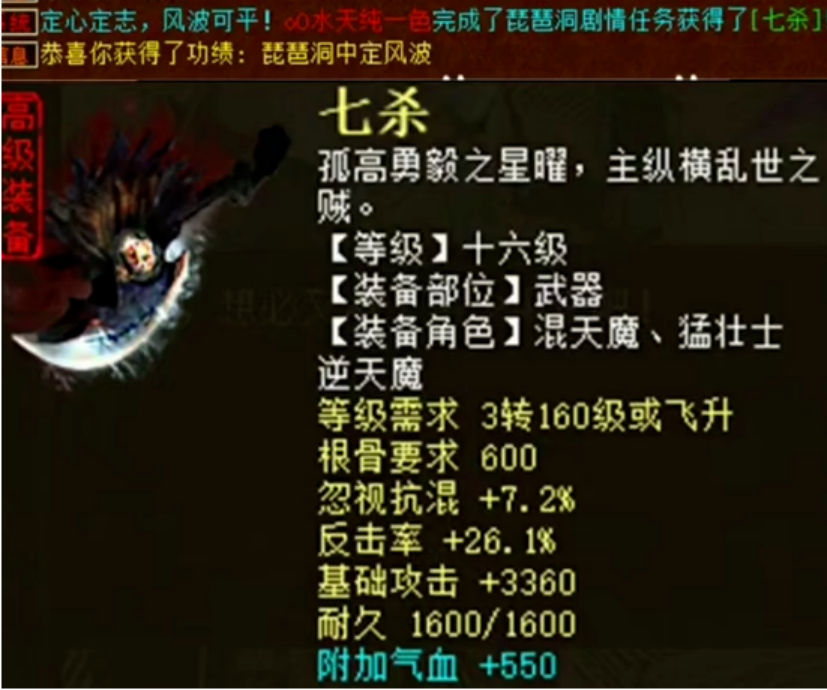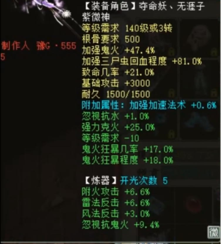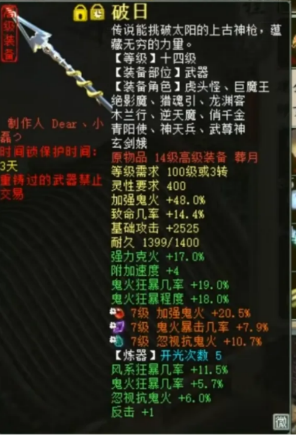 七彩太子晒出灵猴12禁制成绩,再一次刷新记录!单挑男鬼属性曝光,面板能达到怎样的高度?给“衙役”点出问号很奇怪吗,这次真的有点怪!曾经秒杀转鬼的武器,今日有人踢馆!过称给了一把七杀,这是表哥家亲戚吗? 老铁们好!今天的大话新鲜事栏目准时奉上,一起来欣赏其中的精彩内容吧! 一、挑战灵猴12禁制,七彩太子刷新记录! 玩家七彩太子晒出灵猴12禁制成绩,用时仅仅20分36秒,并附留言“给点压力”! 20分钟杀完 看榜单成绩排行,七彩太子队伍超越第二名6分20秒,这压力看起来真不小啊! 二、单挑猛鬼属性曝光,血量相当惊人! 一位专攻单挑的男鬼玩家,今日展示出了自己的面板属性,来看看他的整体数据能达到什么高度吧! 属性展示 这位玩家在种族巅峰赛上,凭借优异表现赢得鬼族亚军,118万的血量看上去确实有点吓人,再搭配上对应抗性,恐怕真的是打不动、嚼不烂、煮不透的钢铁猛男吧? 三、“衙役”点出问号,细看绝不简单! 给“衙役”点出问号,相信很多兄弟已经司空见惯了,但这次的问号可不简单,宝宝本身更不简单,一起来围观! 系统消息 明察问号龙马 玩家给一只名叫“衙役”的宝宝点出了问号,细看之下,居然是一头双终极龙马,这是故意用名字来忽悠鸡驴大神吗?还真被你忽悠到了! 四、曾秒杀转鬼的鬼火武器,今日有人踢馆! 之前为老铁们展示过一把非常给力的鬼火武器,当时主人直言求踢馆,而今天,踢馆的真来了! 之前晒出的鬼火武器 踢馆的来了! 这把踢馆的武器,底子加强鬼火47.4,炼化克火25、鬼火狂暴几率17、鬼火狂暴程度18,炼器忽视鬼火9.4,区别就是这把克火较高,至于炼器谁好谁赖,欢迎兄弟们留言讨论! 五、过剧情称谓,喜获极品七杀! 兄弟过剧情称谓时,获得了一把极品七杀,如果不炼化双项叠加,感觉都对不起这底子! 踢馆的来了! 这是一把底子满忽视混的武器,蓝字属性附加气血550,如果蓝字也是忽视混那就无敌啦,不过现在这样也相当完美了,恭喜老铁! 今天的大话新鲜事就到这里了,感谢Xy2瘾君子、少「雨落」。、小萌、小猪等玩家们的热心投稿,小伙伴们如果在游戏内外碰见任何有意思的事情,都可以给我们投稿哦! [编辑:209dejwf]