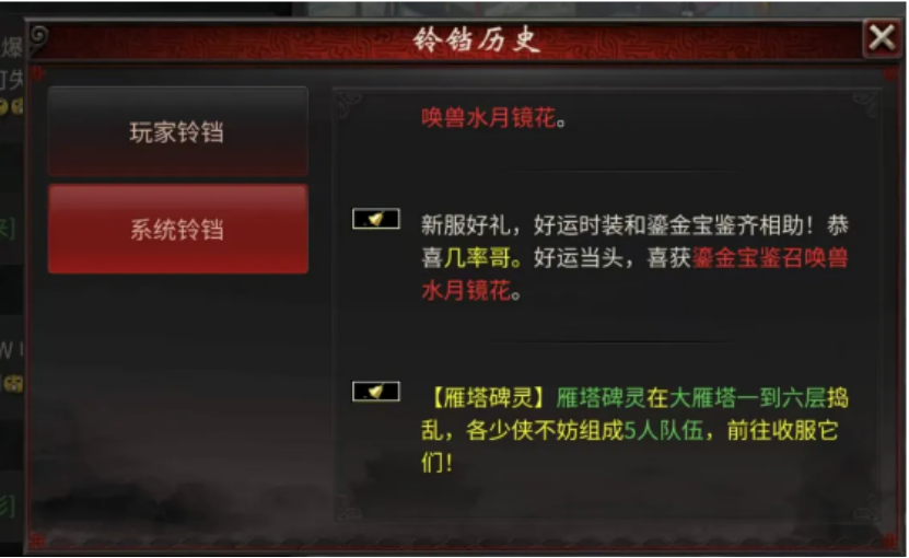 三、史上最“穷”的穷奇奖励? 很多老铁还在努力研究怎么杀穷奇boss,而下面这支队伍,却见识到了“穷”奇的真面貌! 系统消息 杀完之后,获得四颗龙涎丸加一颗九转,老铁你这脸也太黑了吧,还有比他更惨的吗,求超越! 四、开服三月,他收获两只大宝鉴宝宝! 来自逍遥物外服务器的玩家,开区仅仅三个月,就成功收获了两只鎏金宝鉴召唤兽,再看这位兄弟的名字,原来一切都是有道理的! 获得水月镜花 妙音鸾女 第一次通过新服活动获得一只水月镜花,改名之后又获得一只妙音鸾女,“几率哥”果然名不虚传,老铁们学到了嘛? 五、风法武器炼器,再现极品属性! 玩家给自己的风法武器炼器,成功炼出了超极品属性,但他一点都高兴不起来,什么情况? 武器炼器忽视混4.8 炼器忽视混3加强混4.2 十六级武器,底子忽视风30.6、加强雷48.8,炼化强力克火47、速度9,第一次炼器炼忽视混4.8,接着又炼出忽视混3、加强混4.2,怎么说呢,铁子要不换把混武器试试? 今天的大话新鲜事就到这里了,感谢wwwlw、阿呆、树叶过河靠浪、王姨之托、酒仙百里东等玩家们的热心投稿,小伙伴们如果在游戏内外碰见任何有意思的事情,都可以给我们投稿哦! [编辑:0wdgc]