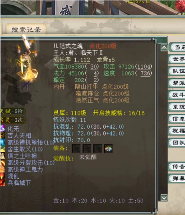一块三级朱雀符石,竟然以40万的价格被秒了!顶级敏队“徘徊姐”拿下大君老板的两只化无!一块无量琉璃,直接砸出男人极品衣服!新的一年开始,合个神兽看看运气如何?梦渊副本极品仙族武器,求超越! 老铁们好!今天的大话新鲜事栏目准时奉上,一起来欣赏其中的精彩内容吧! 一、三级符石,成交价高达40万! 藏宝阁上一块三级朱雀符石,标价高达40万,居然还被人秒了,简直不可思议,真的假的! 符石全貌 属性为速度+423,目前已经是成交状态,这块符石到底好在哪里,有老铁知道的还请评论区留言,难道这是块绝版符石吗? 二、徘徊姐买走大君双化无! 一线敏队“阿木古郎”中的玩家徘徊姐,最近成功拿下大君老板的两只化无范式,也再次给敏队注入了强大推力,希望今年他们能打出个好成绩! 徘徊老板女人号 交易记录 化无范式 第二只化无范式 满级满灵犀的化无范式之魂,目前看来,这支队伍的物资应该是敏队里最强的吧? 三、一块无量琉璃,一发入魂出极品! 闲来无事,集市买了一块无量琉璃,准备砸件十六级衣服,而且没上巫铸直接砸,来看看出了什么! 购买信息 衣服全貌 一发入魂砸出一件男人衣服,底子加强混6.9、加强封印4.9、抗混39.2,蓝字忽视混0.2,在没上巫铸的情况下砸出这样的属性,算是完美了吧? 四、新的一年,合个神兽奖励自己! 新年新气象,玩家准备了一套神兽碎片开合,想试试看手气如何,希望来只六艺神兽吧,不知能实现否? 准备开始 灵听 恭喜老铁合出一只灵听,结果很满意,灵听的价格目前是神兽秒里最贵的了,新的一年开始,大家的新年愿望是什么呢? 五、梦渊副本,爆出仙族极品武器! 玩家展示了一把梦渊副本中的仙族武器,堪称梦渊仙族的天花板了,兄弟们速来围观! 武器展示 底子加强雷73.2、雷系狂暴几率45.5,绿字仙法狂暴几率16.7、仙法狂暴程度10.1,特技低级索命神雷,这武器在梦渊中属于什么级别?求超越! 今天的大话新鲜事就到这里了,感谢无名大兄弟、小优、无处不青山°、言初、牛小黑等玩家们的热心投稿,小伙伴们如果在游戏内外碰见任何有意思的事情,都可以给我们投稿哦! [编辑:29keo]