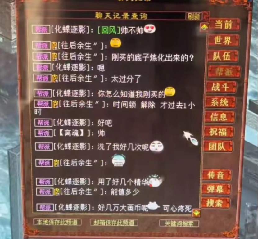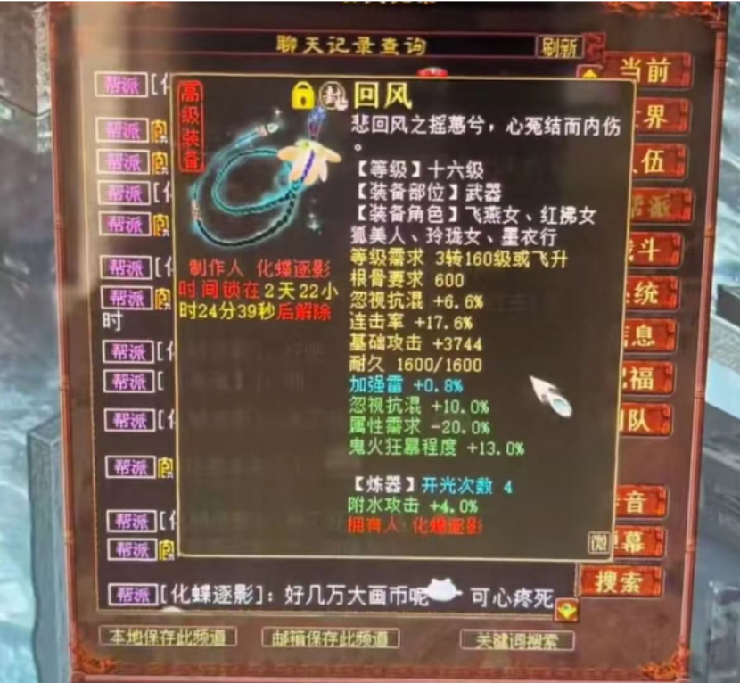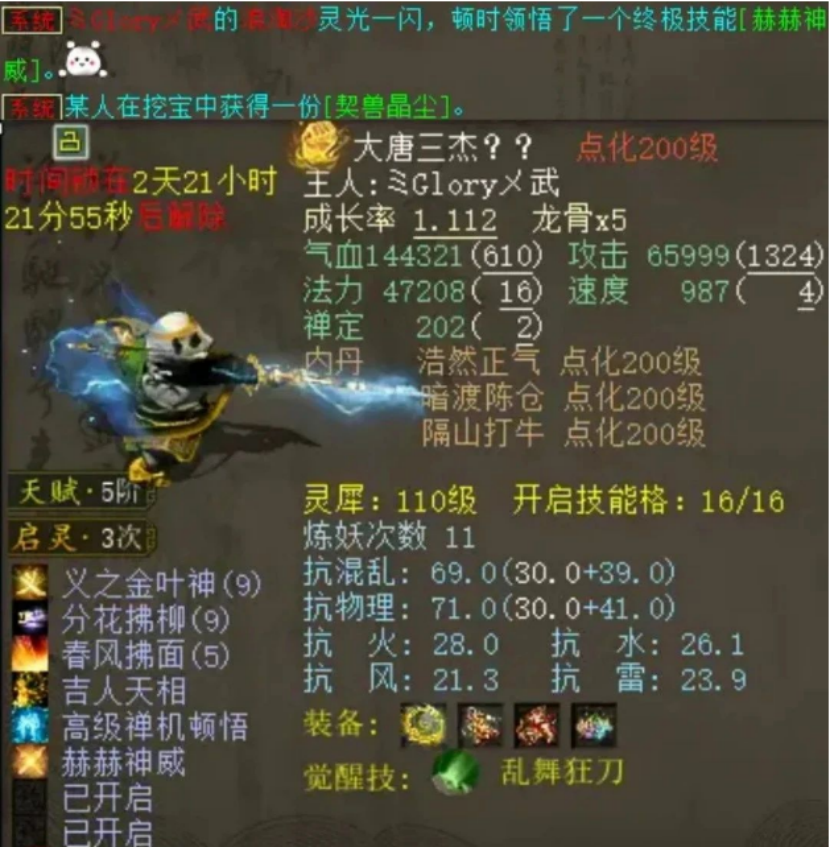 一只0级冥灵妃子,竟然卖出了1.65万的价格,什么情况?陆左老板亲手洗的六阶项链,直接完美毕业!传说中的大唐三杰,果然非同凡响!刚买的一把忽武器底子,一会功夫炼化直接毕业了!充钱改变命运,还真的让他应验了? 老铁们好!今天的大话新鲜事栏目准时奉上,一起来欣赏其中的精彩内容吧! 一、0级妃子卖了1.65万,主人已爽翻! 近日,一只0级妃子以1.65万的价格成交,还是直接“转账”完成的交易,一起来看看怎么回事? 冥灵妃子 转账记录 这是一位来自踏碎凌霄服务器的老铁,他给自己的冥灵妃子点出问号后,被区里的土豪直接1.65万买走,但小编还是要提醒大家,线下交易有风险,尽量还是走阁子吧! 二、陆左出手,六阶项链完美出炉! 陆左老板给自己的六阶项链炼化,成功炼化出高级召唤兽支援特技,这算是完美毕业了吧? 项链全貌 六阶项链,底子抗混6、抗封印6、速度200,蓝字力量2,特技:高级召唤兽支援,整体看起来相当给力,恭喜恭喜! 三、大唐三杰,果然名不虚传? 传说中的大唐三杰果然厉害,看来只要名字起的好,鸡驴大神迟早会眷顾的,这不,又是一例明证出现了! 浪淘沙全貌 神兽浪淘沙灵光一闪,领悟终极技能“赫赫神威”,这一刻它的身价瞬间飙升了十倍不止,如果单看名字的话,还真以为是家丁、武士、强盗这些家伙呢! 四、十六级混武器,再现忽视十属性! 玩家刚买的一把忽武器底子,不到一小时的时间就毕业,莫非是忽视十属性降临江湖了? 帮派喊话 武器全貌 底子忽视抗混6.6,炼化出忽视混10、属性要求-20%,虽然底子不算完美,但炼化-20%的属性要求,直接让这把武器的价格起飞,炼器再来个忽视混3的话......不敢想象! 五、他叫“充钱能改变命运”,真的被他装到了! 老铁为了被几率,突发奇想改了个名字,叫“充钱改变命运”,紧接着就去地宫随机,结果真的被他装到了! 系统消息 俗话说知识改变命运,但它几率不了藕丝,看来只有改名才能改变命运啊,兄弟们还在等什么? 今天的大话新鲜事就到这里了,感谢春晓、赵公子、晚晚、化蝶逐影、充钱改变命运等玩家们的热心投稿,小伙伴们如果在游戏内外碰见任何有意思的事情,都可以给我们投稿哦! [编辑:109diow]