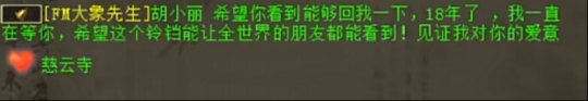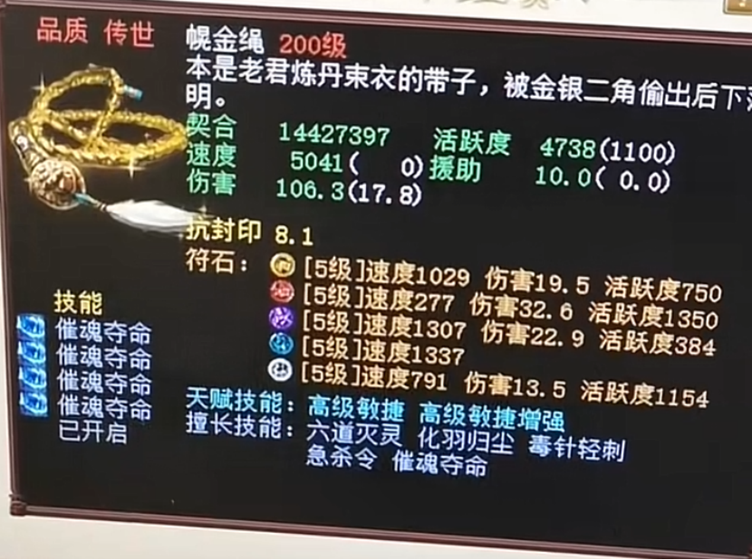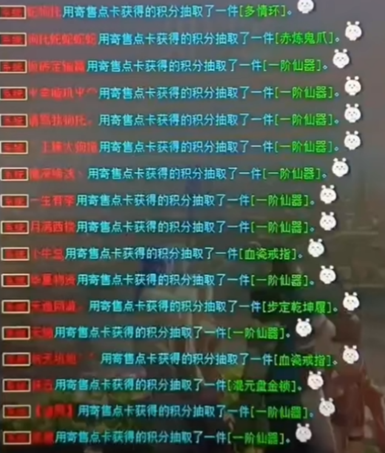 乱世久夏展示一枚灵宝”幌金绳“,据说一块青龙符石都可以换两头化无年了?18年了,他一直在等那个女生!这把六阶算全服第一克水龙武器吗!点卡寄售积分抽奖,他竟然抽出这么多高级奖励?蛇年行大运,开个银宝箱看看能出什么? 兄弟们好!今天的大话新鲜事栏目准时奉上,一起来欣赏其中的精彩内容吧! 一、炸裂幌金绳,青龙符石换俩化无年! 日前,乱世久夏展示出了自己的灵宝”幌金绳“,这条绳子无论从哪个方面看都极为强悍,特别是上面的一块青龙符石,据说都可以换两头化无年了? 灵宝全貌 200级超级灵宝”幌金绳“,天赋技能:高级敏捷、高敏敏捷增强,伤害原始17.8,总伤害106.3,再看看这块青龙符石,兄弟们觉得真的值两头化无年吗? 二、痴情小伙,竟等她18年? 有位痴情的老铁在铃铛喊话,他一直在等待心上人上线,这一等就是18年,来自慈云寺服务器的“胡小丽”你还在吗? 铃铛喊话 希望这个铃铛能让全世界的朋友都能看到,以见证大象先生对你的爱意,大家有没有许久未联系的朋友或者伴侣呢,不妨留言@他/她一下吧! 三、超强六阶克水龙武器,蓝字绿字高到夸张! 这把六阶苍暮,由于出现了非常惊人的蓝字和绿字,也被一众龙族兄弟称为“全服第一克水龙武器”,一起来欣赏! 武器全貌 六阶龙族武器,底子克水20,、 加强霹雳效果30,蓝字炼化克水27.3,炼器强力克水27.1,总克水74.4,还有比这更高克的武器吗?求超越! 四、点卡积分兑换奖励刷屏! 点卡寄售积分抽奖,他竟然抽出这么多高级奖励,这到底是卖了多少点卡啊? 系统消息 看节奏应该是同一个人,连续抽出神兵多情环、赤练鬼爪、步定乾坤履、混元盘金锁,还有11把一阶仙器,这至少也是好几万的点卡积分吧? 五、银箱子也能一发入魂! 蛇年行大运,开个银宝箱看看手气,不知能不能来个神兵开开心? 购买信息 花99万买了把银钥匙,直接开出神兵枯骨刀,这运气也太好了,恭喜老铁! 今天的大话新鲜事就到这里了,感谢月野兔、FM大象先生、咖啡、萍姐、夏天6593等玩家们的热心投稿,小伙伴们如果在游戏内外碰见任何有意思的事情,都可以给我们投稿哦! [编辑:09skdor]
