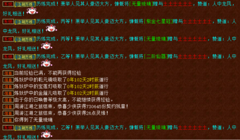 玩家给自己的六阶正骨混炼化,结果炼出百万级属性!带飞轩修罗,没想到这只飞轩竟逆天改命!十四级武器竟能一炮秒死转鬼,太牛了吧?三百环改版后,奖励确实提高不少!很多人想看女娲COS,今天让你们开开眼! 老铁们好!今天的大话新鲜事栏目准时奉上,一起来欣赏其中的精彩内容吧! 一、又一把百万级男人神器问世! 六阶正骨混仙器炼化时,竟一举炼出双特技混属性,看来又一把百万级武器问世了! 帮派消息 炼化过程 武器全貌 出品人是来自水云仙府服务器的大哥,武器底子忽视混16、加强混12,炼器忽视混5,特技正骨混、圣灵混,神奇问世,谁与争锋! 二、神兽飞轩逆天改命! 带六艺神兽飞轩修罗,没想到这只飞轩竟逆天改命,直接领悟终极技能“作鸟兽散”! 系统消息 飞轩灵光一闪,凭实力提升身价,这一辆奥迪A6算是到手了吧? 三、拿十四级武器竟能秒死转鬼? 十四级武器竟能一炮秒死转鬼,太夸张了吧?到底是什么属性,伤害竟如此之高? 武器全貌 秒死转鬼 人物属性 200级大炮,忽视风22.2、强风法142.3、风系狂暴几率73.5、风系狂暴程度40.6,关键他拿着一把十四级武器,哥们你是怎么升到200级的呢?小编一脸问号啊! 四、这波三百环奖励如何? 三百环改版后,奖励确实提高不少,咱们来看看今天这位老铁的奖励吧! 系统消息 无量琉璃、紫金七星冠、无量琉璃、二阶仙器、无量琉璃,算是很不错了,老铁们的三百环赶紧跑起来吧! 五、火神女娲真人cos! 听说很多人想看女娲COS?今天让大家开开眼,来一波相当少见的精品展示! COS火神女娲 舍身女娲 符咒女娲 很用心cos的女娲系列,别的不说,起码诚意拉满了,感谢这位妹子的付出,兄弟们是不是圆梦了?下次还想看哪个cos,小编继续给大家搜罗! 今天的大话新鲜事就到这里了,感谢月亮是我啃弯的、谨言、一剑闯江湖、大魔王、哎呦等玩家们的热心投稿,小伙伴们如果在游戏内外碰见任何有意思的事情,都可以给我们投稿哦! [编辑:pekf]