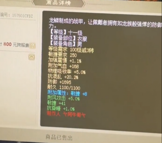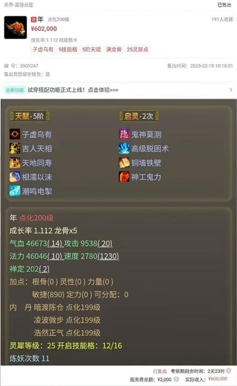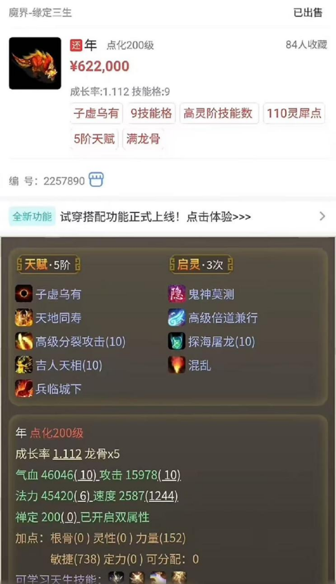 不到一个月的时间,他连续洗出两把江湖神器!帅达达老板近日拿下两只子虚神兽“年”!一件十一级衣服,竟卖了5万块?给羊驼吃三个龙骨,结果全部爆敏!好久没玩,上来就捡漏一只三转松鼠! 老铁们好!今天的大话新鲜事栏目准时奉上,一起来欣赏其中的精彩内容吧! 一、绝非凡人!一月洗出两把神器 来自众志成城服务器的老铁,不到一个月的时间里,他竟连续洗出两把神器,上次是双特技混武器,而这次是六阶冰武器,一起来欣赏! 武器全貌 底子忽视冰22.5,蓝字忽视冰1.1,炼器忽视冰5,特技圣灵(混)、寒骨(冰),圣灵虽然不是冰的,但也是双特技的属性,这运气也太好了吧? 二、达达入手两只子虚神兽年! 帅达达老板近日拿下两只子虚神兽“年”,貌似敏队最近卷得挺厉害,很多敏队成员都在添购物资,莫非是在准备某场大战? 神秘帅达达 第一只子虚年 第二只 两只子虚神兽年,一共花了122万,大话的高手们实在太豪横了,出手就是几百万的项目! 三、十一级衣服,竟卖五万块? 一件十一级衣服,竟以5万块的价格成交,这应该算是全服最贵的十一级衣服了吧? 系统消息 衣服全貌 十一级青龙甲,衣服底子加强震慑1.1,抗混20.2,蓝字敏捷8,炼化敏捷41,总加敏49,虽然加敏非常高,但价格是不是太贵了点? 四、羊驼吃龙骨,全部爆敏! 给羊驼吃三个龙骨,结果全部爆敏,你这是照着加速度的龙骨买的吗? 吃龙骨前 吃龙骨属性 六开变色克火羊驼,初敏速度330,三个龙骨全部爆敏,初敏速度高达348,再爆下去就快赶上年兽了? 五、好久没玩,上来就捡漏? 兄弟好久没上线,没想到上来就捡漏一只三转松鼠,原来......是摊主摆错价格,少输一个0! 松鼠售价 购买 聊天记录 一只三转提炼松鼠,号主花135万捡漏,虽说不是什么大漏,但也是很开心,在这里也提醒各位老铁,摆摊的时候一定要输对价格,千万不要大意哦! 今天的大话新鲜事就到这里了,感谢冷月醉逍遥、赵公子、三疯、曲尽人终散、百晓笙等玩家们的热心投稿,小伙伴们如果在游戏内外碰见任何有意思的事情,都可以给我们投稿哦! [编辑:d9wk]