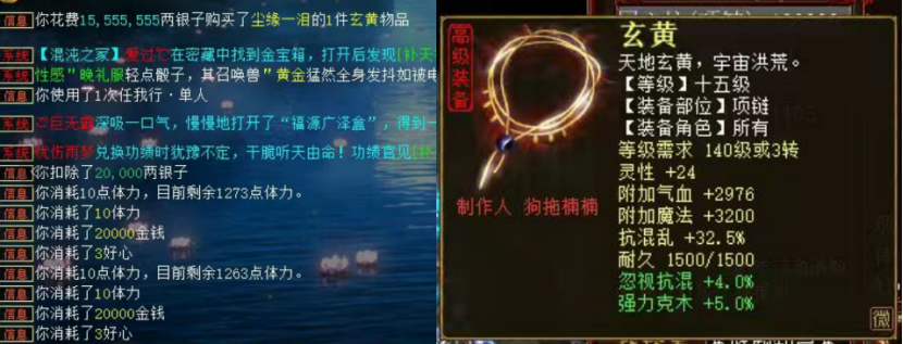 陆左的六级藕丝再度升华,全服第一敏鞋诞生!大君出手,购入双终极龙马!阿木花驴合出一颗10级奇异石,惊喜来得这么突然?花1500万买的项链,炼化三次就出了忽视混4!一天收获三件神兵,这剧本是自己写的吧? 兄弟们好!今天的大话新鲜事栏目准时奉上,一起来欣赏其中的精彩内容吧! 一、陆左洗出全服第一敏鞋? 近日,陆左老板的六级藕丝有了新的变化,成功洗出蓝字满加敏属性,这应该是全服第一敏鞋了吧? 藕丝全貌 六级藕丝,蓝字附加速度4,加10级120品质的速度宝石,两项属性都是满的,还有能超越的吗? 二、大君新入手双终极龙马! 大君哥近日又出手了,购入一只双终极龙马,准备重修技能,并且已买好了大批的修炼丹! 绝境子虚龙马 准备终极丹 据说是准备秀一把化无加夺魂?无论怎样,这服务器的物价也跟着涨起来啦! 三、阿木花驴合出奇异石! 阿木花驴合出一颗10级奇异石,惊喜来得太突然了,一起来看看怎么个事? 10级奇异石 之前合宝石已经失败五次了,这次抱着平常心出手,结果合出一块奇异石,这泼天的富贵说来就来,恭喜驴哥! 四、单车变汽车情景再现? 玩家花1500万游戏币买了条项链,没想到仅仅炼化三次,就炼出满忽视混属性,直接单车变汽车! 项链全貌 十五级项链底子灵性24、抗混乱32.5,炼化忽视混4,这才入手不到5分钟的时间,就直接炼化毕业,丝滑! 五、一天收获三件神兵! 想都不敢想的几率,今天就真的发生在这位老铁身上,他才刚刚回归不久,一天之内就收获三件神兵! 锁子黄金甲 第二件 双回 两件衣服,一把双回,这结果太扎心了,大家在一天之内获得最好的几率是什么呢?欢迎评论区留言吧! 今天的大话新鲜事就到这里了,感谢陆左、无名大兄弟、阿木花驴、对方正在输入、阿晨等玩家们的热心投稿,小伙伴们如果在游戏内外碰见任何有意思的事情,都可以给我们投稿哦! [编辑:韦小贝]