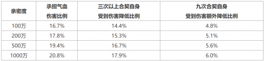 舍命女娲 1.最高初值: 2.最高初始成长率:0.714 3.五行:水95 金5 4.技能:替劫诡面(主动) 5.技能说明:驱使面具为1个目标施加替劫状态,为有此状态的单位承担气血伤害,持续3回合,冷却5回合。 · 三次合契舍命女娲自身受到伤害降低; · 六次合契替劫目标数增加1个; · 九次合契自身受到伤害额外降低。 6. 三转170级技能参数: |