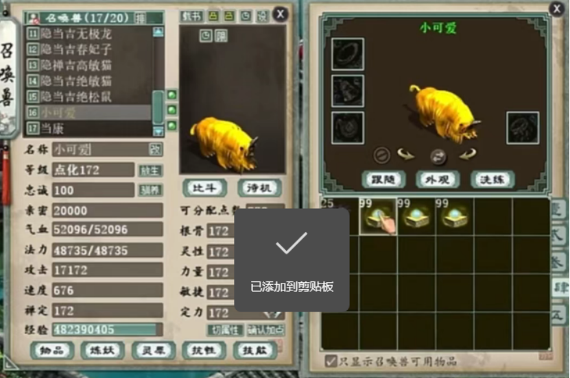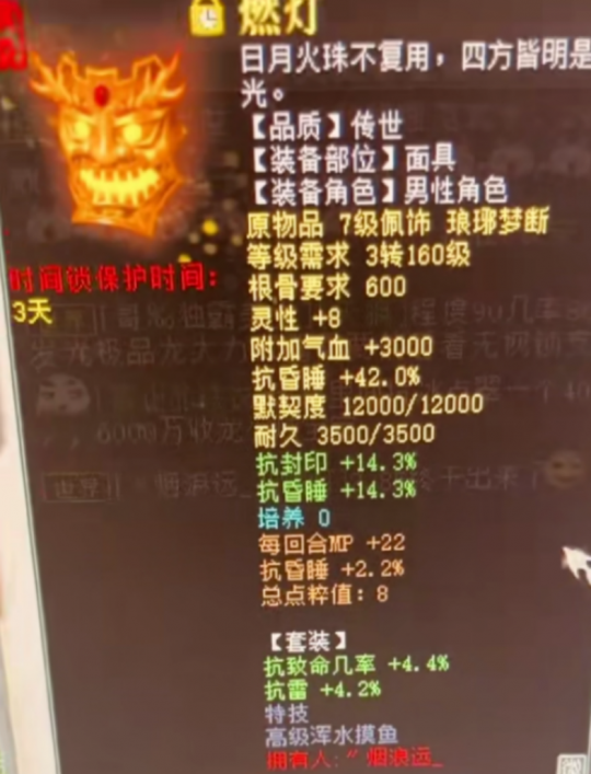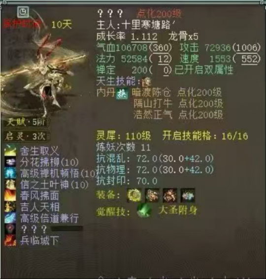 无远佛届退隐江湖,盖总男鬼换男人顶替位置!凌烟阁大事件,秒赚130万元!最完美的水爆项链,不仅有克有狂暴还有忽视!问号黄金开修,求化无?花了2.8亿洗终于洗出这个特技,亏了还是赚了? 兄弟们好!今天的大话新鲜事栏目准时奉上,一起来欣赏其中的精彩内容吧! 一、无远佛届退隐江湖,是为何故? 众志成城服务器“无远佛届”近日传出退隐江湖的消息,不知是何原因,而盖子的男鬼也改换成男人,以顶替缺失的男人位置? 男鬼换男人 据说这也是盖子第一次玩剑侠客的角色,同时小欢虎也回归到众志成城,莫非是欢虎的女人号要换男鬼角色吗?知情的老铁们不妨来讨论一二! 一、秒赚130万,凌烟阁再爆大事件! 来自凌烟阁服务器的老铁,宝宝名字“???”,结果还真让他点出问号了,并且这波直接赚了130万? 系统消息 问号一念圣猿 嚯!原来是一念圣猿,全服第四只问号大猴诞生,上一只的成交价应该就在130万左右,这只不知会被哪位大佬拿下,小编也会持续关注! 三、超牛水法项链,迄今为止无人超越? 这应该是迄今为止最牛的水法克火项链了吧?无论是底子还是炼化,都是水法大仙的最爱,一起来欣赏! 项链全貌 十五级项链,底子灵性28、抗混乱37.1,炼化忽视抗水2、强力克火28、水系狂暴几率18,老铁们能挑出毛病么? 四、问号黄金开修,求化无! 一只问号黄金兽修炼终极技能,而且只准备修一手,看看能不能一发入魂来个化无! 准备修炼 将死 最终修出终极技能“将死”,这亏大发了呀,希望兄弟下次好运吧...... 五、花2.8亿洗的特技,看看值不值? 这位老铁给自己的七级配饰面具洗特技,最终花了2.8亿游戏币,才出了下面这个特技,到底是亏了还是赚了? 世界喊话 面具全貌 七级面具打燃灯传世套,炼出特技“高级浑水摸鱼”,藏宝阁最便宜的浑水摸鱼也得800块,这么一算的话,花2.8亿洗出来是不是赚了? 今天的大话新鲜事就到这里了,感谢十里寒塘路'、Moonlight°、一战倾城、无聊玩大话、阿杰等玩家们的热心投稿,小伙伴们如果在游戏内外碰见任何有意思的事情,都可以给我们投稿哦! [编辑:韦小贝]