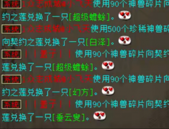 盖子一天兑换五只神兽,这是在干嘛?超强克火龙武器出世,属性堪称天花板!论名字的重要性,这到底是起对了还是错了?最后的铸剑师展示自己的鬼火武器,全服都罕见!陆左晒日常属性,忽视抽高达44! 兄弟们好!今天的大话新鲜事栏目准时奉上,一起来欣赏其中的精彩内容吧! 一、盖子一天换五只神兽? 盖子连换五只神兽,大佬就是大佬,玩起几率来也这么刺激,不知他是想要什么神兽呢? 系统消息 神兽碎片、珍稀神兽碎片接连开合,合出超级蟾蜍两只、幻方、垂云叟、白泽,怎么感觉还有点小亏? 二、超强克火龙武器,挑战全服! 超强克火龙武器,堪称同类天花板了,这是被哪位大哥拿下了?一起来看看! 武器全貌 六阶霹雳破,蓝字炼化强力克火27.9,炼器强力克火29.2,这炼器也太牛了吧,也是小编目前见过炼器最高的克火属性了,求超越! 三、论名字的重要性! 论起名字的重要性,今天真让他实现了,但总觉得哪里不对?咱们来看看是怎么个事! 聊天信息 系统消息 玩家“明察秋毫”,给自己的冥灵妃子领悟了明察秋毫,好友喊话“让你起明察”,要是起个化无是不是就不一样了#89这下真长记性了...... 四、年哥的鬼火武器展示! “最后的铸剑师”展示出自己的鬼火武器,这样的属性全服都少有吧,兄弟们快来开开眼! 武器全貌 六阶鬼法武器,底子加强鬼火54、忽视抗鬼火21、加强三尸虫5000、三尸虫回血程度100,蓝字强力克木14.9,炼器鬼火狂暴几率3.3、忽视鬼火10.4,特技血冥(鬼火),该说不说,也只有追求完美的人,才能炼出这样的属性了#24 五、陆左日常属性首曝光! 来自庞泉战队的男魔“陆左”,近日可谓风头正盛,通常这样的大佬都比较注重属性方面的隐私,但近日他却曝光了自己的日常属性面板,一起来看看! 人物信息 属性展示 加强震慑58.7、忽视抗震慑44.3,这一个大抽下去谁能受得了?期待下次能曝光出PK属性#89 今天的大话新鲜事就到这里了,感谢盖世无双-鑫达、一毛、忆往昔、小优、橘温~暖茶等玩家们的热心投稿,小伙伴们如果在游戏内外碰见任何有意思的事情,都可以给我们投稿哦! [编辑:韦小贝]