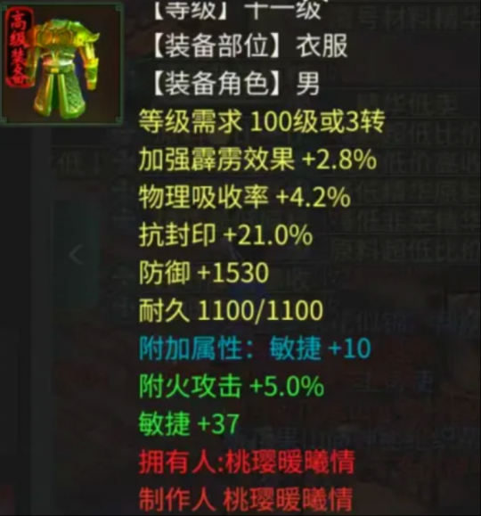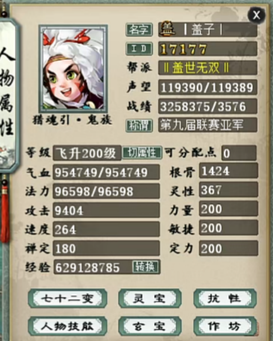 盖子最近新入手一枚男鬼号,据说年后就会亮相比武赛场!未转102小号,竟夺得水路大会第一名!地宫随机我要换藕丝,还真让他换出来了?靠时间和几率攒的两把四阶仙器,厉害了?十一级衣服炼化,炼出万元项目! 兄弟们好!今天的大话新鲜事栏目准时奉上,一起来欣赏其中的精彩内容吧! 一、盖子新进男鬼号出镜! 盖子大佬最近新入手一枚男鬼号,据说年后就会亮相比武赛场?目前只能看到这个号的属性面板,咱们先来欣赏欣赏! 人物属性 站街状态血量高达95万,ID:17177,目前正在收购大量化无宝宝和装备,看来一枚顶级男鬼又要诞生了,有知情的老铁知道这是买的谁的号吗? 二、未转小号夺得水陆第一名? 未转102队伍,成功夺得水陆大会第一名,飞升号难道都打不过他们吗? 水路排名 梦中人大家应该还记得,开创未转天花板的男人,身带各种绝版装备,最近他们队伍夺得服务器水陆大会第一名,这记录怕是没人能打破了吧,太牛了! 三、地宫随机我要换藕丝! 玩家地宫积分随机,喊话“我要换藕丝了”,没想到还真让他一嗓子喊出来了,这嘴巴开过光吧? 系统消息 帮派里刚喊完要换藕丝,结果藕丝步云履就来了,兄弟们快来沾沾喜气,说不定就能圆个藕丝梦! 四、靠时间和几率攒仙器! 他靠时间和任务几率,攒了两把四阶仙器和一枚青龙星阵,太不容易了! 四阶水法武器 四阶混武器 青龙星阵 这是位五开玩家,仙器很不错,青龙宫位也挺亮眼,这得花多长时间才能攒下这三件装备,确实不容易啊! 五、十一级衣服炼出万元项目! 十一级衣服炼化,竟炼出万元项目,我怎么炼不出这样的属性呢? 衣服全貌 底子抗封印21,蓝字敏捷+10,炼化敏捷+37,总加敏47,还没打套装,套装再炼个加敏属性,直接就是敏50以上的衣服了,这价值得几万块吧? 今天的大话新鲜事就到这里了,感谢盖世无双-鑫达、梦中人、华夏、元元、哦等玩家们的热心投稿,小伙伴们如果在游戏内外碰见任何有意思的事情,都可以给我们投稿哦! [编辑:韦小贝]