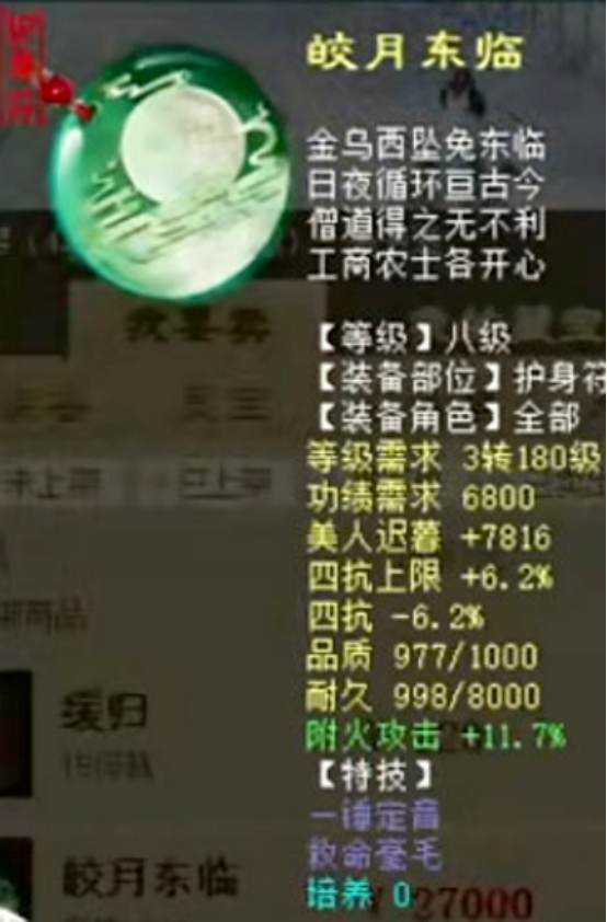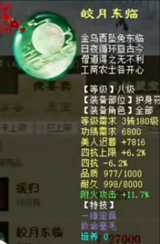 一条十五级项链,有人说价值超越百万?召唤兽技能翻倍当天,他给飞轩点出了问号?一颗10级120加速宝石诞生,全服有几颗?五级震天戟上六,能成功否?2.7万的双特技护身符,有人要吗? 兄弟们好!今天的大话新鲜事栏目准时奉上,一起来欣赏其中的精彩内容吧! 一、普通项链,价值超百万? 小编收到投稿,一条十五级项链炼化出男人极品属性,有人说价值超越百万?但怎么看都有点不对劲! 项链全貌 底子抗封印36.7、根骨33,炼化加强混5、忽视抗混4,大话真有这样的炼化属性吗?小编也是头一次见到,兄弟们觉得这图是真是假? 二、技能翻倍当天出问号,赚大了! 召唤兽技能翻倍当天,他就给飞轩点出了问号,这就是传说中的鸡驴眷顾吗? 问号飞轩 一只还未成型的六艺神兽飞轩,竟然点出了问号,年终奖提前到手了啊,感谢表哥! 三、十级120加速宝石,全服少见! 一颗十级120的宝石重铸,玩家表示只要加速的,可这样的加速宝石全服都没几个啊! 紫烟石重铸 加速琉璃石 瞬间成功,能带这宝石的人,肯定不是一般人了,有人知道这是哪位大神吗? 四、五级震天戟冲六! 玩家给自己的五级附吸神兵“震天戟”上六,能不能来个一发入魂? 五级震天戟 上六魂 神兵损坏 一把五级附震慑攻击神兵,直接拿六魂冲六,结果跟小编想的一样,直接碎掉,虽说是一把垫底,但这是不是有点可惜了? 五、双特技护身符2.7万? 八级护身符皎月东临,带双特技,售价竟高达2.7万,这都差不多能买把五阶仙器了吧? 护身符 八级护身符,底子四抗上限、美人迟暮,品质977,特技:一锤定音(减少被连击几率15%)、救命毫毛(被物理攻击时一定几率触发物理伤害减半效果),男鬼和女魔一般都带返生香,什么种族带这护身符合适,价格方面是不是偏贵了? 今天的大话新鲜事就到这里了,感谢小小七、赵公子、刀剑如梦、师傅马保国、追风过海等玩家们的热心投稿,小伙伴们如果在游戏内外碰见任何有意思的事情,都可以给我们投稿哦! [编辑:韦小贝]
