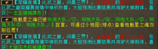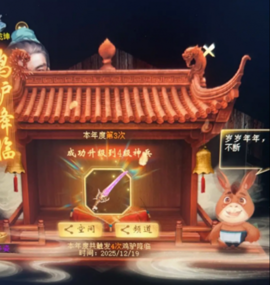 随着2025年马上接近尾声,今年你给过最好的奖励是什么,和他相比如何?盖子灵宝触发几率高的原因找到了,那需要多少契合度?比武荣耀竞猜,他一个人就收获两件高价值实物奖励!售价3.36万的年兽,卖亏了?被罚一万仙玉后该怎么回本,看看他的操作。 兄弟们好!今天的大话新鲜事栏目准时奉上,一起来欣赏其中的精彩内容吧! 一、你今年最好的奖励是啥? 随着2025年马上接近尾声,今年你给过最好的奖励是什么,和他相比如何? 系统消息 领悟终极技能 问号浪淘沙 他一年给两只浪淘沙领悟了终极技能,第一只修罗任务获得子虚乌有,第二只点骰子出问号,虽说价格不能和问号圣猿媲美,但一年点两只终极神兽,试问还有谁? 二、盖子灵宝契合度曝光! 盖子灵宝契合度曝光,怪不得能经常触发乾坤遮天合击技能,原因在这,一起来看看。 灵宝契合度 超级灵宝金箍契合度16181617,此灵宝的合击几率100%,全服有几人能做到百分百的合击,不愧是全服一线队,涨见识了。 三、比武竞猜见狗托? 比武荣耀竞猜,他一个人就收获两件高价值实物奖励,这也太狗托了吧? 系统消息 荣耀竞猜获得一念圣猿铜摆件和实木机械键盘,哥们这运气也太好了吧,老铁们你们都给的什么奖励,来评论评论。 四、年兽3.36万卖亏了? 某人以3.36万实惠的价格购买了一只神兽“年”,有人说这价格买亏了? 售价信息 一只神兽年3.36万被买走,有老铁们说这只年最少能卖4万,原因是满级满灵犀技能全部毕业,那卖家是买亏了哈,损失好几千块啊。 五、被罚一万仙玉后的操作! 被罚一万仙玉后该怎么回本,一起来看看他是如何操作的。 被罚信息 神兵上四 又一把四级 上线收到被罚信息,一气之下怒冲两把枯骨刀,而且都成功上四了,不仅回本还赚了一笔,老铁优秀啊! 今天的大话新鲜事就到这里了,感谢蒙べ成先生、盖世无双-鑫达、xy2灵灵、龙王、有良心的奸商等玩家们的热心投稿,小伙伴们如果在游戏内外碰见任何有意思的事情,都可以给我们投稿哦! [编辑:韦小贝]
