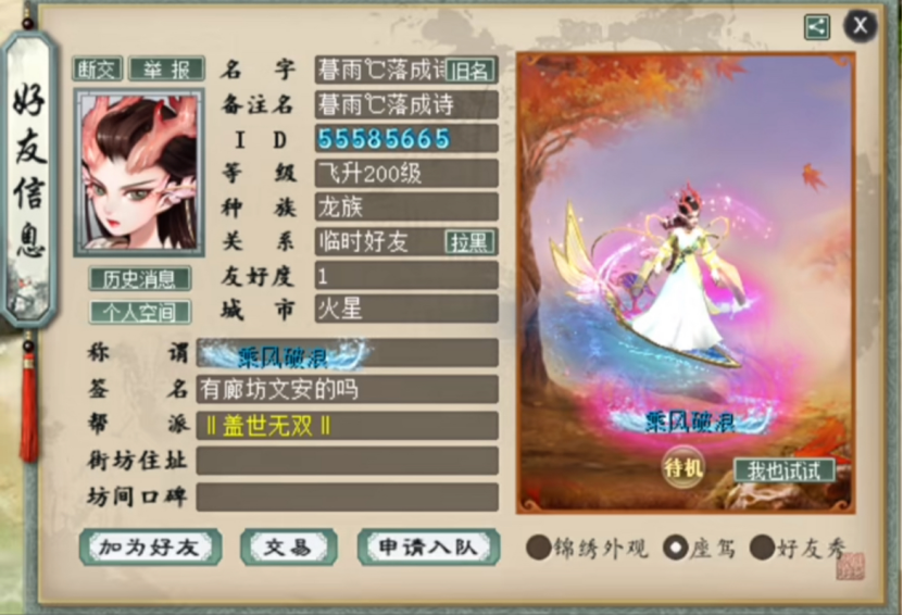 庞泉酒庄战队迎大将回归,有人知道他是谁吗?六阶无属性冰武器,炼出扎心双特技!一只浪淘沙出了动画片,自己给自己过年!拿16级混武器的男人属性超越6阶?三界答题圆梦藕丝,第一名又炸了! 兄弟们好!今天的大话新鲜事栏目准时奉上,一起来欣赏其中的精彩内容吧! 一、庞泉酒庄迎大将回归,且看是谁? 庞泉酒庄战队近日有一名新队员加入,角色是女龙,有人知道她是谁吗? 角色展示 据说这位神秘人是刚刚回归,就直接选择加入了庞泉酒庄战队,后续也期待看到这个号的物资情况,以及她在赛场上的表现! 二、无属性冰武器,炼出扎心双特技! 六阶无属性冰武器,成功炼出双特技,但结果却非常扎心,一起来看看怎么个事? 炼化过程 武器全貌 六阶无属性冰武器,竟炼出正骨、圣灵双混,可惜偏偏出在冰底子上,直接错失百万,心疼...... 三、一只浪淘沙给自己过年? 来自百鸟朝凤服务器的玩家,给家养的浪淘沙点出了问号,这是自己给自己过年的节奏? 问号浪淘沙 这种从天而降的馈赠,不知是选择卖掉兑现呢,还是自己修炼? 四、16级混人属性,竟能超6阶混? 手拿16级武器的混人,属性竟能超越6阶混人,这不太科学吧? 属性展示 200级男人手拿16级混武器,站街变卡加强混70.1,忽视抗混49.9,这属性不是一般的夸张啊,有多少六阶兄弟不如他的,举个手看看! 五、三界答题圆梦藕丝,有人哭有人笑? 三界答题,第一名又又陪跑了,关键还给了一双藕丝,你说气人不气人! 系统消息 藕丝步云履 一生有你服务器的老铁,在三界答题中喜得藕丝步云履,心疼第一名的老铁,以后试着把手速降个0.01秒看看? 今天的大话新鲜事就到这里了,感谢乱世小马、哐哐、泱泱玉、敲不响的木鱼、Du.c等玩家们的热心投稿,小伙伴们如果在游戏内外碰见任何有意思的事情,都可以给我们投稿哦! [编辑:ccc]