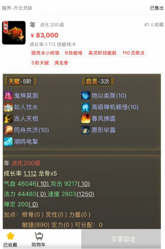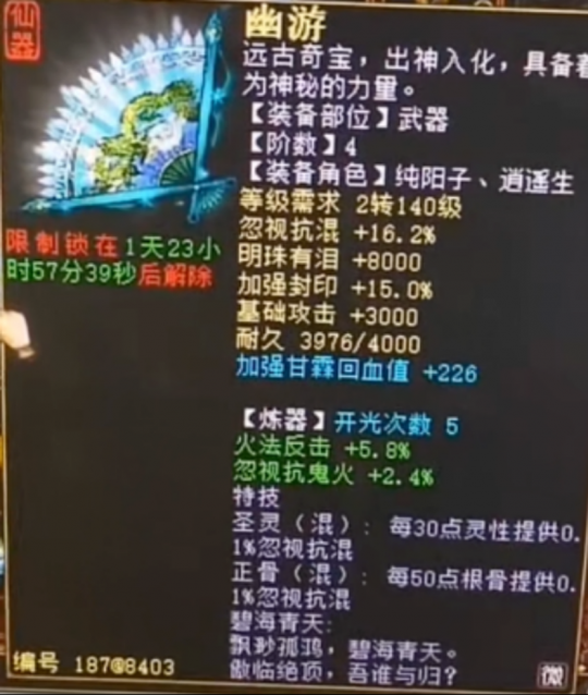 五级绝版青龙符石,听说值8位数?全服第一双特技混武器诞生!合宝石对他来说太丝滑了,9级都是小菜!一只普通神兽年竟然卖了8万块,为何能卖这么高?罕见的一条极品仙族项链,看了流口水! 兄弟们好!今天的大话新鲜事栏目准时奉上,一起来欣赏其中的精彩内容吧! 一、盖子问价?据说价值八位数的青龙符石! 近日,未转大神“梦中人”展示了一块自己珍藏的五级绝版青龙符石,引来盖子问价,感觉有点夸张啊! 符石展示 5级青龙符石速度1337,当盖子问这块符石多少钱的时候,有人说得千万了,懂行的老铁们不妨来鉴定一下,这块青龙符石到底值多少? 二、全服第一双特技4阶! 他洗出了全服第一把双特技四阶混武器,目前只差炼器毕业了,一起来欣赏! 武器全貌 老版四阶混武器,底子忽视混16.2、加强封印15,特技圣灵(混)、正骨(混),炼器在来个忽视混5就完美毕业了,老版四阶加双特技混全服目前就这一把吧? 三、合宝石真的那么难? 合宝石真的有那么难吗,今天这位老铁一口气合出一块9级宝石,四块8级,过程相当丝滑! 合成消息 宝石 就第一次失败,没用紫山玉的情况下,直接合出一块9级、四块8级,这操作太牛了! 四、一只普通神兽年,居然卖了8万? 一只普通神兽年,竟然卖了8万块,到底有什么独特的地方,为何能卖这么高的价格呢? 出售信息 满级满灵犀年 满级满灵犀,其他年售价4.15万,而这只8.3万被人买走,然而这只年的速度初值是1250,五个龙骨全爆敏了,怪不得敢卖这个价! 五、极品风法项链毕业! 罕见的一条极品仙族项链,风法炮谁看谁眼馋,口水流一地! 项链全貌 十五级项链,底子抗封印28.7、敏捷27,炼化灵性15、强力克火29、风系狂暴几率18、速度18.套装炼化强力克火4.9、加强风0.8,还有比这属性更完美的吗,求超越! 今天的大话新鲜事就到这里了,感谢san了个晒、三十四、小小木子李、凌云老李、豹子七等玩家们的热心投稿,小伙伴们如果在游戏内外碰见任何有意思的事情,都可以给我们投稿哦! [编辑:韦小贝]