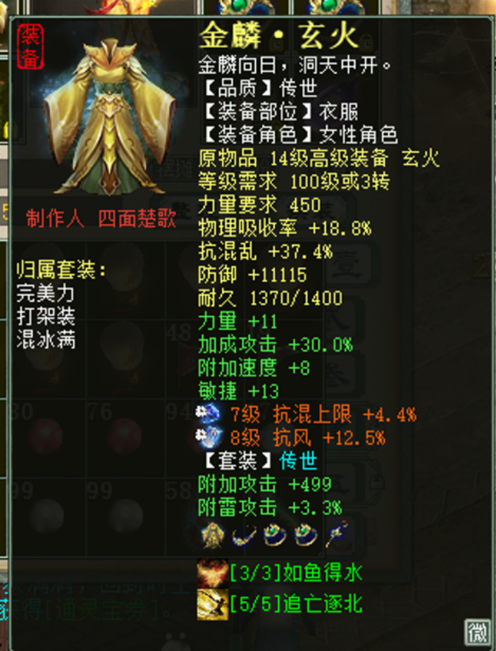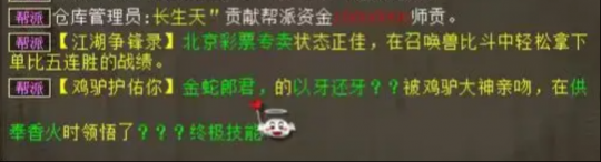 大君的第十只终极圣猿,近日成功修出化无!这个神火罩的的亮点在哪里?这算不算全服最牛的大力衣服?两把六阶冰武器,同时炼出无属性特技!以牙还牙领悟终极技能,看来名字真的很重要! 兄弟们好!今天的大话新鲜事栏目准时奉上,一起来欣赏其中的精彩内容吧! 一、大君第十只圣猿修炼毕业! 大君的第十只终极圣猿,近日成功修出化无,看来PK江湖的格局,随着这一只只神猴的出世,也在悄然发生改变...... 系统消息 化无一念圣猿 前面一只终极圣猿修炼16手毕业,这只一共修炼7手修出化无,目前大君手里一共有10只化无一念圣猿了,现在一只化无圣猿的价值是多少,有人知道吗? 二、这个神火罩的亮点在哪? 优衣酷战队成员,展示出一枚高级灵宝“神火罩”,据说要淘汰掉,一来看看这个灵宝亮点在哪? 灵宝全貌 200级传世神火罩,原始伤害19.7,天赋技能:高级敏捷、低级根骨增强,速度4311、伤害88.3,符石有一块3级青龙速度696,这难道是一块绝版符石吗? 三、最牛大力衣服,求超越! 这算不算最牛的大力衣服,炼化不仅加攻,还有32点属性点?一起来欣赏! 衣服全貌 十四级大力衣服,底子抗混37.4,炼化加成攻击30、力量+11、速度+8、敏捷13,套装炼化附加攻击499,这衣服也太完美了,老铁们觉得如何? 四、两把武器同时炼出特技! 两把六阶冰武器,同时炼出无属性特技,这是什么神仙运气,但号主却只想要双特技? 第一把武器 第二把武器 两把一模一样的6级冰武器,要不留一把无属性,另一把再继续炼? 五、“以牙还牙”领悟终极技能? 鸡驴护佑你,他的“以牙还牙”被鸡驴大神亲吻,在供奉香火时领悟了修炼中的终极技能,会不会真的是以牙呢? 系统消息 帮派信息 给心猿烧香烧出问号,宝宝名字太显眼了“以牙还牙”,名字很重要啊!春节刚过完就来了这么大的惊喜,太幸运了,恭喜恭喜! 今天的大话新鲜事就到这里了,感谢东方大猫咪、小优、无名大兄弟、梦境等玩家们的热心投稿,小伙伴们如果在游戏内外碰见任何有意思的事情,都可以给我们投稿哦! [编辑:韦小贝]