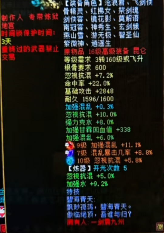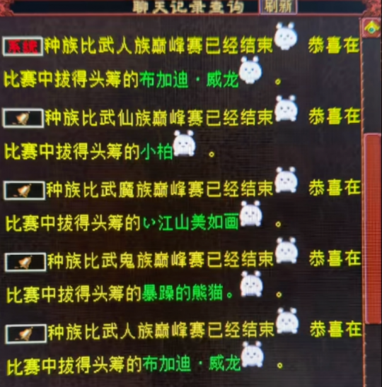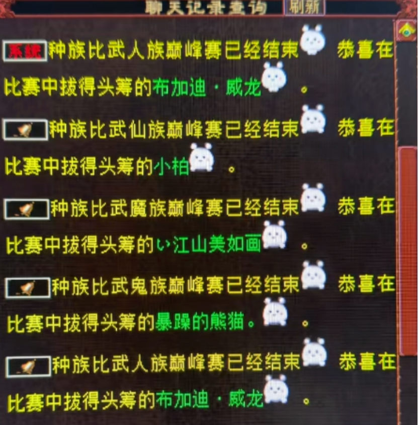 什么样的男人,大君和盖子都打不过他?近日乱世久夏重修终极技能,最终修出全服仅有!都说这把十六混武器是全服第一?三百环奖励,世界喊话来最贵的神兵?一个人拥有两把天花板鬼火武器! 兄弟们好!今天的大话新鲜事栏目准时奉上,一起来欣赏其中的精彩内容吧! 一、大君盖子都没拿到第一? 种族巅峰赛,大君和盖子都没登顶,还有比他两更强的人? 系统消息 新一届的种族巅峰赛,大君和盖子都没能拿到第一,第一名被“布加迪威龙”夺得,看来还有比这两位大佬更强的人族啊! 二、双终极狐小妖毕业! 近日,乱世久夏给自己的双终极狐小妖重修终极技能,最终竟成为全服仅有! 系统消息 狐小妖 这似乎是全服唯一双终极狐小妖,修出了化无和春回大地,属性点细节没有展示,大家看看这只宝宝价值多少? 三、全服第一十六混武器! 很多人说这把十六级混武器是全服第一,小编觉得......好像还差点,咱们一起来看看! 武器全貌 十六级武器底子忽视抗混7.2,蓝字加强混0.3,莲华忽视抗混10、加强混乱6、炼器忽视抗混5,9级强法宝石和10级忽视抗混5.8宝石,不看石头的话,这把武器称得上全服第一嘛? 四、三百环喊话,来最贵神兵? 三百环领奖励,世界喊话来最贵的神兵,咱们看看能成真吗? 世界喊话 系统消息 还真让他给喊来了,最终获得最贵的神兵“藕丝步云履”,这样的喊话方式还是第一次见,太牛了! 五、两把天花板鬼火武器! 他一个人拥有两把天花板鬼火武器,有人知道这是哪位神豪吗? 第一把武器 六阶苍暮底子忽视鬼火44、鬼火狂暴几率26、加强魅惑33、强力克火20,炼器鬼火狂暴程度4.9、忽视抗鬼火10.9,特技血冥(鬼火)。 第二把 第二把底子加强鬼火54、强三尸5000、鬼火狂暴几率21、忽视抗鬼火21、加强三尸回血程度100,炼器鬼火狂暴几率4.9、鬼火狂暴程度3.1、忽视抗鬼火5.2,特技无属性,这两把武器炼器特技都很到位,这是哪位神豪有人知道吗? 今天的大话新鲜事就到这里了,感谢庞泉酒庄乱世小马、花公子、小小七、冠希、小优等玩家们的热心投稿,小伙伴们如果在游戏内外碰见任何有意思的事情,都可以给我们投稿哦! [编辑:xmcr]