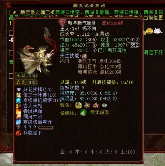 新神兽曝光,龙马涨价了!他的一念圣猿今天被电击了,这是今年的第几只终极圣猿?天花板级别的克火毒女属性曝光,求超越!五级鬼火老版神兵,现在价值多少?论名字的重要性,怪不得人家能得神兽! 兄弟们好!今天的大话新鲜事栏目准时奉上,一起来欣赏其中的精彩内容吧! 一、新神兽曝光龙马涨价? 全新神兽曝光,目测长得像龙马,有人认为终极龙马可以变神兽,导致最近龙马身价大涨? 全新神兽 藏宝阁信息 藏宝阁的一些终极龙马全被玩家买走,但据之前的爆料,这神兽其实是和龙马是没关系的,难道是放了一波烟雾弹吗? 二、他的圣猿被电击了? 来自众志成城服务器的玩家,他的一念圣猿今天被电击了,这是今年的第几只终极圣猿? 点出问号 圣猿全貌 新年新气象,这只圣猿也是争气,直接领悟修炼中的终极技能,直接百万到手,恭喜恭喜,今年这是第几只问号圣猿了,有人知道吗? 三、天花板克火毒女! 天花板级别的克火毒女属性曝光,求超越,一起来欣赏! 属性展示 200级毒女属性展示,抗混乱178.8、抗封印148.7、抗遗忘148.2,强力克火400.1、加强毒伤害231.9,速度1611,这是进战斗吃符属性吧,但这强毒伤害也太高了吧,求超越! 四、五级绝版鬼火神兵! 五级鬼火老版神兵,现在应该很难见到了,那它现在价值多少呢? 神兵全貌 五级混天绫底子忽视抗遗忘10、忽视抗鬼火20,蓝字忽视抗遗忘2.6,炼器忽视抗遗忘3,这样的老版女鬼神兵如何? 五、怪不得他能得神兽! 来自花开洛阳服务器的老铁,成功获得紫霞仙子,仔细一看,他的名字才是亮点! 神兽全貌 在月光宝盒活动中收获“紫霞仙子”,名字“几率常伴吾身”,真的让他几率了,佩服佩服! 今天的大话新鲜事就到这里了,感谢野猫、梦境、是狐狸啊、惊雷、老观等玩家们的热心投稿,小伙伴们如果在游戏内外碰见任何有意思的事情,都可以给我们投稿哦! [编辑:omwnd]