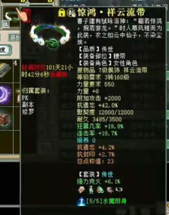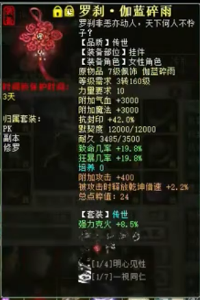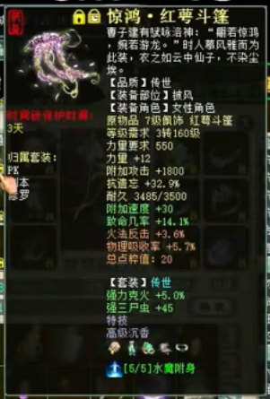 克火401.7+强霹雳56的五四克火龙展示,法术抗性三项飙红,物理属性四项飙红,以下是属性详情以及装备一览,欢迎鉴定。 属性及抗性展示 五阶武器 项链 帽子 衣服 四阶低召鞋子 高级沉香披风 挂件 面具 左戒指 右戒指 腰带 护身符 星符 [编辑:莫听雨]
