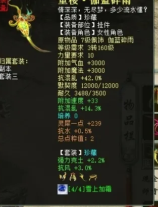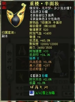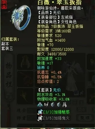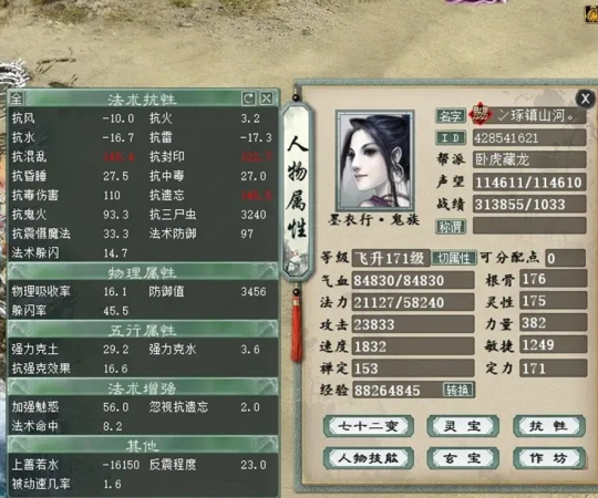 玩家展示自己队伍的强魅惑女鬼,主打一个追求性价比,老惯例,先看属性再看装备,最后附上队伍战绩。 属性及抗性展示 法门 天演策 套装、特技、星阵一览 武器 衣服 项链 鞋子 帽子 金牛星符 怨而不宣护身符 高级睚眦必报披风 挂件 面具 左戒指 右戒指 腰带 灵猴12禁制,1个半小时 雁塔异光七层,39分49秒 龙脊烽烟卓越祷杌分身 秦陵幽宫卓越秦皇17分54秒 炼狱180地宫,3分26秒结束 [编辑:莫听雨]