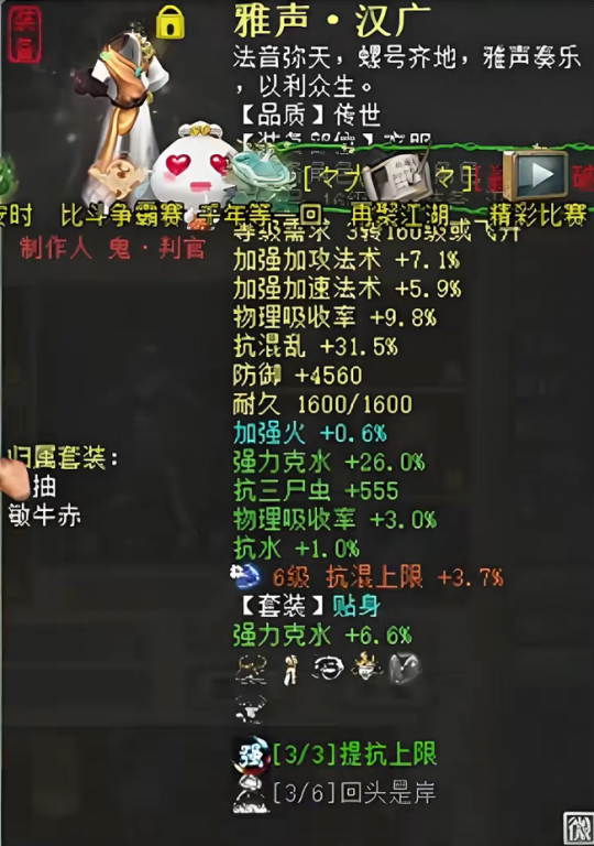 玩家展示自己的克水四阶魔,能牛能抽,属性不吃符强抽26.3+忽视抽13.2+强牛60.4,后附大件装备一览。