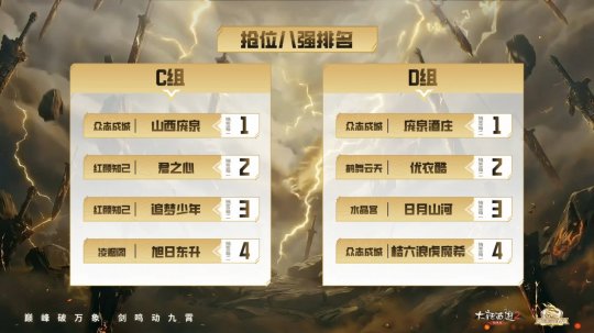 巅峰破万象,剑鸣动九霄!2026天梯巅峰战年度总决赛8强抢位赛圆满结束,晋级本届线下赛的八强战队也已全部诞生,他们将在4月30日聚首山东·青岛总决赛现场,共同挑战百万奖金、冠军奖杯、定制奖牌等荣耀大奖! 八强战队出炉,相聚线下擂台!4月30日~5月3日,2026天梯巅峰战年度总决赛线下赛阶段即将到来,期待八强战队会师山东·青岛,携手攀登天梯之巅,届时也欢迎江湖少侠踊跃前往线下观赛,超多现场好礼等你来! [编辑:莫听雨]