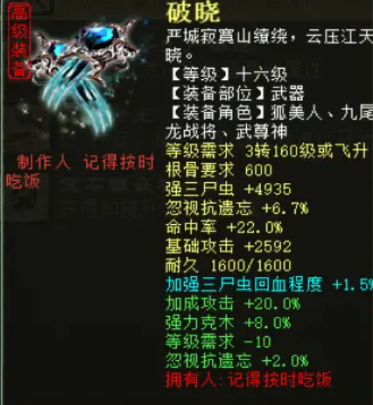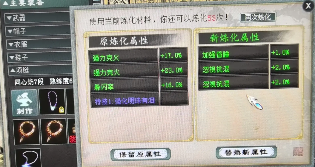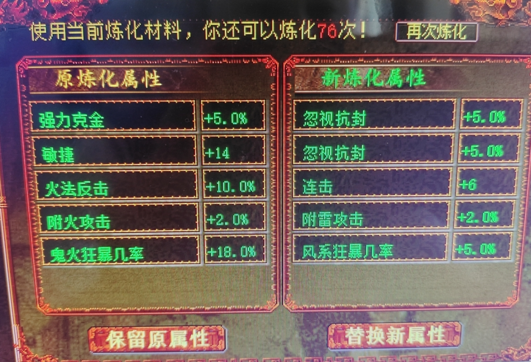 新一期“悲喜装备/属性”鉴赏来了,先看一条底子抗雷加蓝字忽视混0.9的项链,炼化忽视混4+强睡1,给力。 ——【1】—— 给项链炼化出忽视混4加强睡1 底子是抗雷加蓝字忽视混0.9的项链 (晒图人:小施老师。) ——【2】—— 给武器炼化出忽视遗忘叠加,但数值只有2 哎,何时才能几率我忽视遗忘10? (晒图人:王不留行) ——【3】—— 底子忽视混6.8的武器 炼化克土50,扎心了 (晒图人:刘涛) ——【4】—— 给武器炼化出忽视冰10 可惜玩家说这是把鬼火武器 (晒图人:以戈止戈) [编辑:莫听雨]