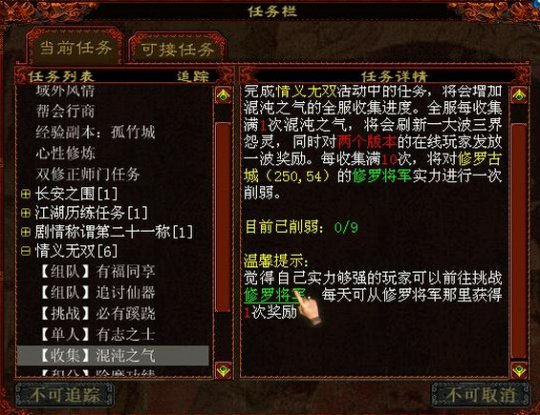 有志之士 这个算是福利任务啦,简单的找找NPC便可以得奖励,200W+经验,还有1500+的除魔功绩,省事省力省心,要是任务都这样多好...(懒人伤不起啊~) 混沌之气 ![]() 混沌之气