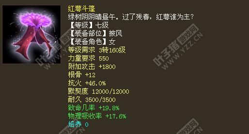 上课无聊,无事可想。 来YY一下我最爱玩的大力魔,要是使用六阶套装备是什么样#89 帽子其实可以搭配老版的那种,未必要仙器,抗冰混60的就可以了。 这样的高抗血攻魔,550力量,其余全血,是不是很变态啊#89 单挑的时候不带宝宝,任你混我,我咔咔咔的砍#89 哈哈哈,想想就觉得爽呢! <<点击进入大话西游2论坛讨论>> [编辑:编号223]