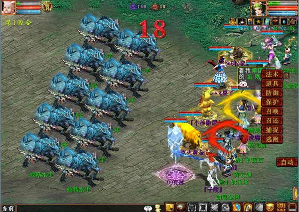 二、队伍篇! 在覆海大殿的队形方面,有很多种选择。 ①:两魔、两仙、一男鬼(男人、女人) 这个队形相对比较稳,我现在用的就是两魔两仙一男鬼的组合。这个组合的好处就是在于鬼可以回血(这不废话么#17)。 这样的组合有几点好处。 其一,魔族可盘可输出! 这是第一个哨长,大家看后排中间的三个怪,三个哨长。那么,这就意味着它有可能会出三个大抽。所以,敏宝宝就起到了关键作用——反拉魔出手(抽或盘)。 如果你的队伍火力足够,那么,两个魔拉自己抽就好,男仙的敏冰块2400+的敏,必定比哨长快,就算乱敏,不是还有个包克的屁娃娃么。 当然,如果火力不够,那么,女魔是一定要盘的,不然那60-70点的雷法抗性还不足以抗的住对面的火力扫荡。 如果不带男鬼的话,换成男人和女人也是可以的,女人的毒法在覆海大殿有着天然的优势,就算只强10几点,也能毒十万的血,而且是持续回合的伤害。 如果是男人的话,那么必然要选择睡人。 选择混人,我想最低配置也得是变态混,这样的武器也不便宜,上面忽视6点,下面炼化8点,再开光,这样的一把武器好基友队伍转型的时候3.2亿卖掉的。所以,选择一把变态睡的武器比变态混要换算的太多太多,最重要的是装备星卡护身符也相对便宜。 队伍敏捷搭配:敏宝宝2300-2400敏,魔族2000敏,仙族1500-1600敏,鬼族自然是越低越好,人族方面,女人的敏捷在1300左右就好,男人同样,不过仙的敏要提升到1600-1700,不要超过,不然300之内都会乱敏。 这个套路适合平民玩家,只要你的六坐骑不是太垃圾就好。 选择指数:★★★★★ ②:三魔、两仙(一仙一女人) 三魔两仙的搭配属于相对于暴力杀法,火力一定要到位,如果火力不到位怎么办?没关系,盘上杀呗,不过抗性得到位才行。基本上抗仙法70左右,稍微强些盘的女魔一盘上,基本就秒不动你了。 如果实在没有好仙,带上一个女人也是可以的。 一般选择这样不要控制不要回血的队伍太暴力,甚至可能1-2回合就结束战斗,对火力的要求相对也高,适合一些小资或土豪神豪之类的玩家。不过速度之快却是超乎你想象的。 选择指数:★★★★☆ ③:一魔、一鬼、三女人 这个组合不多见,基本在老服务器是不多见的,但是在新服,这样的组合是刷覆海大殿的最佳组合。 由于队伍等级低,怪的血也相对少,那么,女人的毒就体现出了巨大的优势。 三个女人一起毒,再加上持续回合的伤害,这是多恐怖的伤害啊#113 但是,这个组合不适合老服,等级高,怪的血更多。而且,最最重要的一点——老服去哪给你找那么多女人呢? 鉴于在新服这种组合还是比较好用,所以,四星半吧。 选择指数:★★★★☆ ④:两魔、三仙 这个搭配就没什么多说的了,完全是小资和土豪的组合,比三魔两仙还疯狂,纯纯的火力碾压。 不过现在游戏中有能力投资4阶仙器的玩家还不少,小资可选。 选择指数:★★★★ ⑤:两魔、一仙、一人、一鬼 这个组合一般很少见,就算有鬼,鬼也是个敏的秒鬼,带回血鬼的话,男人就得强混,总不能睡完了鬼在回血吧? 当然,这个组合也不是不能杀,只是在少了一个火力的前提下,速度会相对较慢,而且对男人的强混要求也高。 选择指数:★★★ ⑥:四魔、一仙 这个是真心不推荐,除非你是土豪,你的灵宝已经牛叉的不要不要的。而且——那么多加不到魔的扯着嗓子喊的撕心裂肺,你一人手里攥着四个魔,放爱一条生路吧。 选择指数:★★