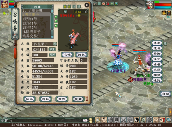 我的20级乾坤,大圣,各一套,混元丹两个,身上现金带到上限,180的宝宝一头。 前期准备