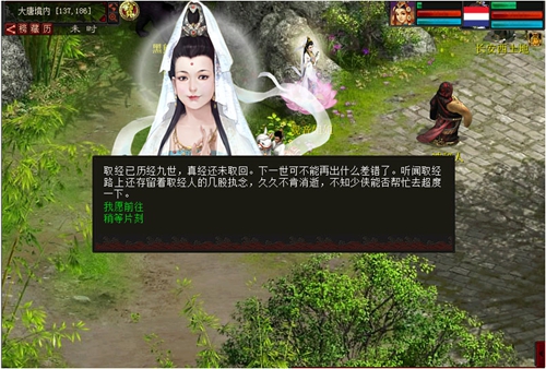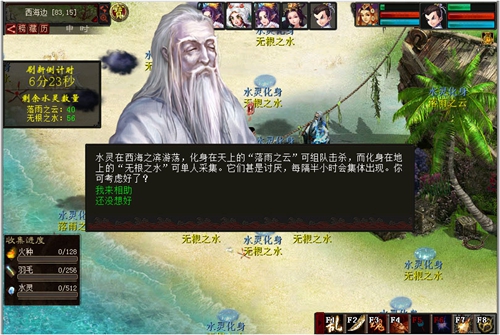 轮回宿命·单人任务 一、任务目的 与监天台上的神秘人对话,开始准备穿梭回小白龙所在的时空。 需帮住西海龙王收集所需的五行元素,以修补西海泉眼。 二、任务步骤 1.与监天台上的“神秘人”对话 与神秘人对话,他会跟你讲述三百年前西海龙宫发生的往事。 2、穿越回三百年前的西海龙宫 神秘人故事讲述完毕,便会将各位少侠传送到西海龙宫所在。 可与西海龙王对话,了解该如何进行五行元素的收集。 任务提示:此任务可单人完成,亦可组队完成。 祝融之火·组队挑战 一、任务目的 要收集的火种,已被火神祝融供奉在圣火坛中,还请少侠前往光明宫帮忙收集。 若想采集到火种,需成功挑战火神祝融;另外采集火种时要接受光明之火的考验。 二、任务步骤 1、找到火神祝融。 传送进光明宫,找到宫殿中央的火神祝融,与其对话。 2、开始挑战火神祝融。 成功挑战火神祝融,得到他的认可后,才可有资格去他后面的圣火坛去采集火种。 3、开始采集火种 采集火种之前,队员需选择暂离队伍,即可进行火种采集;当然单人亦可前往。 任务提示:成功战胜火神祝融和采集到一枚火种,都可以获得灵机值奖励。 全服若成功采集到128枚火种,则将在圣火坛附件洒落西海龙王赠送的宝箱,捡到将有机会获得奖励。 句芒之羽·组队挑战 一、任务目的 木神句芒隐藏在这些树妖之中,3-5人组队去挑战他们,若能成功找出句芒,则可成功收集到羽毛。 二、任务步骤 1、正在沉睡的树妖 传送至青木林,找到正在沉睡的树妖。 2、与树妖进行战斗,找到藏身其中的句芒。 与那些沉睡的树妖,对话后或直接ALT+A,均可进入战斗。 战斗中将有几率遇到句芒,可要小心句芒的怒火,坚持四回合,即可成功获得所需句芒之羽。 任务提示:前30次战斗中,每次战斗胜利,都可以获得灵机值奖励。另外第5、10、15、20、30次战斗将会遇到木神句芒。 全服共需要收集256枚句芒之羽。 水灵化身·采集玩法 一、任务目的 四处游荡的水灵,已经化身为落雨之云和无根之水,散落在西海海边各处,还请帮忙进行收集。 可组队状态下采集落雨之云,战斗胜利后获得水灵。(速度较快,需飞在空中进入战斗) 可单人状态下对话无根之水,采集完全后获得水灵。(速度较慢,只能单人获得进度) 二、任务步骤 1、找到水神 找到西海边的水神,与其对话,开始接受收集水灵的任务。 2、找水灵化身-落雨之云和无根之水 找到落雨之云(飞在空中)和无根之水(落在地上),进行采集,采集成功后则水灵消失。 从活动开始,在14:30、15:00、15:30、16:00等四个时间点分别刷新一次,共四次。 与落云之云对话后,会惊动西海的鱼统领,将进入战斗。 任务提示:成功采集水灵,即可获得灵机值奖励,每人可采集50次,随着次数增加,所得灵机值减少。 全服收集够512枚水灵,即算完成任务。 回到过去·单人任务 一、任务目的 与监天台上的神秘人对话,开始准备穿梭回第九世取经和尚所在的时空。 需尽快沿着取经之路,走到女儿国,救回误饮子母河水的取经人。 二、任务步骤 1、与监天台上的“神秘人”对话 与神秘人对话,他会跟你讲述正在女儿国的取经和尚,因为误饮子母河水,疼痛成胎的故事。 为了修复历史,需要穿梭时空,救助已然躺在子母河边的取经人。 2、穿越回到五百年前的长安城西 神秘人故事讲述完毕,便会将各位少侠传送到长城西所在。 可与随之而来的神秘人对话,看看该如何沿着取经之路,去找取经和尚第九世。 任务提示:此任务可单人完成,亦可组队完成。 取经之路·组队事件 一、任务目的 5人组队,沿着取经之路向前走,一直走到女儿国,找到取经和尚。 记得与沿途所遇到的土地公对话,了解取经和尚在各处经历的故事。 二、任务步骤 1、与沿途土地公的对话 与沿途各个场景的土地公对话,问问他们是否还记得取经和尚的故事。 左上角的任务追踪指引,点击后可以自动寻路至对应的土地公处。 2、听土地公讲述过往旧事 土地公会为你讲述过往取经人在行进路上发生的故事,或是吃到野果毒死,或是跌入山涧而亡,抑或是贪恋红尘不在前行等等。 温馨提示:要耐心观看剧情动画哦,看看唐僧前九世到底去哪了? 3、来到女儿国,找到取经和尚 走完取经之路,来到了女儿国,会看到正在河边疼痛成胎的取经和尚。 在土地公的指引下,需要先去旁边的聚仙庵,取回落胎泉水。(需要战胜如意真仙,这是一场比较有难度的挑战) 4、取回落胎泉水,救治取经和尚 将从如意真仙处抢回来的落胎泉水,喂给取经和尚,果然消了肚子中的疼痛,但也无奈,这取经和尚的性命还是没了。 所幸这取经人的法身未被损坏,还可以继续转世重修;历史算是被修复了,该是离开的时候了。 任务提示:取经之路,会有11环的剧情,每完成一环剧情,将会有一定灵机值奖励。 取经路上会不断遭遇拦路强盗和打手等,还有蛟精和盗魁挡在路上,一定务必小心。 拦路妖怪·组队挑战 一、任务目的 取经路上会不断遭遇拦路强盗和打手等,更有蛟精、盗魁横中阻拦。真是颇多劫难。 拦路强盗和打手藏在取经路上,防不胜防,行走时请小心;而蛟精和盗魁则可以直接挑战。 二、任务步骤 1、拦路强盗和打手 取经路上,需击退30次包括拦路强盗、拦路山贼、拦路土匪、拦路打手等在内的暗雷怪。 2、蛟精与盗魁 蛟精和盗魁会在取经路上出现,遇到了,就尽可能的击杀吧。 任务提示:击杀拦路暗