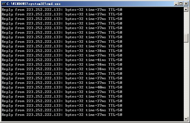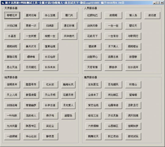 如何知道网络是否正常非常关键,虽然大话2有提供测试工具,但那个测试工具不完善,不能实时的体现出网络状态如何。只能测出当时网络状态。小弟不才,用VB写了个测试大话2所有服务器网络的,本来是打算教大家打开大话2目录,找到目录下服务器地址的文件server.ini,然后找出自己服务器的IP地址,然后用ping命令来测网络的。这样感觉太麻烦,直接用软件更简单。软件很粗糙,将就用吧 只要点一下自己服务器的按钮,就会跳出一个网络测试的界面,如果是长条的如Reply from 223.252.222.133: bytes=32 time=37ms TTL=50这样属于正常的,其中time=37ms就是时间,就是你发送32字节的测试包到服务器,服务器返回来花了37ms时间。如果出现时间好几百或上千的,或者出现比较短的,说明网络不正常,一般100以内算正常的。见下图 数据分析