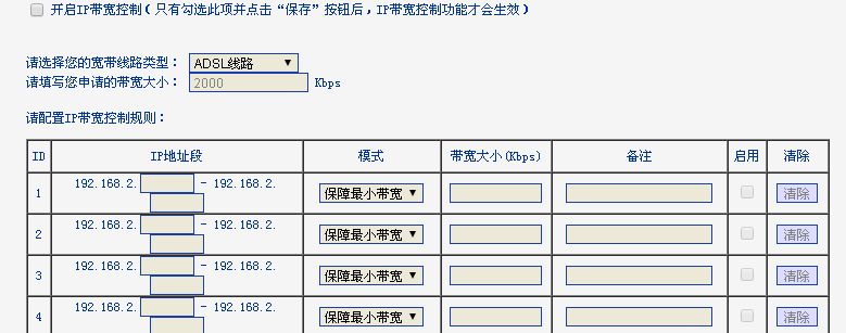 进入路由器后,打开IP宽带控制,开启IP宽带控制,可以限制一些下载量大的用户。见下图 限制他们的网速