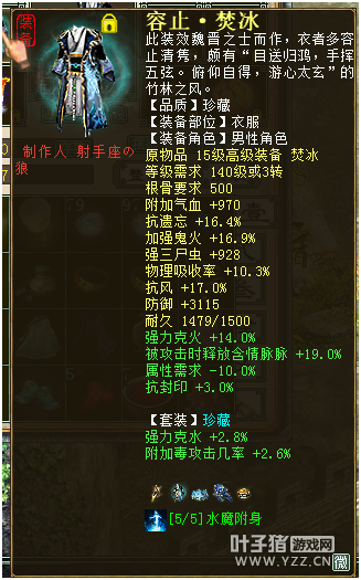 然后衣服、帽子,选择强三尸920+的底子,炼化克火10+ 帽子