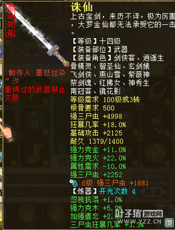 上篇文章写的仙族,我看到有人回复说,不反隐没人要,我想问的是,你任务就光修罗么?再说了,修罗难道两个仙全要反隐?不要火力么? 本期的主题依旧是性价比,这期是克回鬼,相信现在大家对克回鬼并不陌生,在天下第一比武大会上,威震天大放异彩,从此,克回鬼成为很多鬼族玩家的路线。 本期依然以克火为例(本人克火),其它克同理。 首先是武器,武器要强三尸虫4800以上的底子,炼化克火20+,强三尸2000+,炼器三尸虫狂爆几率3+。有人说,为啥不选择狂暴几率25+的武器,我只能说,这样的武器太贵,我的主题是性价比,当然要省钱。宝石至少打上一块强三尸的,强三尸1881(6级98资质为例)。 克武器