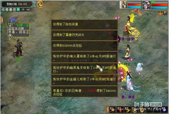 敏队五开杀塔我们见得多了,且基本以克杀为主,今天给大家带来的是四级神兵队五开杀塔详细教程。 大家好,我是夜丶凄凉,今天给大家讲讲如何快速杀塔,1到6是卓越,7是简单的。 还如往常一样先发五个号的属性图,都是四级神兵。(俩魔一仙一女鬼一男鬼) 女魔2 首先领取任务,进入塔1,队长领取任务之后,每个人的任务栏里会随机出现一个坐标,由于不能打开地图,所以很多坐标只能凭记忆找到,最左边数字最小,最下面数字最小,依次类推。 找到坐标后队长点开背包里任务栏里的道具召唤玄峰,这是第一关BOSS,如下图: 杀法:队长带果子点主减抗,其他全部点主抽秒,宝宝随便砍,一般都是一回合。 杀完之后点方丈进入第二层,领取任务之后,四处跑跑就会遇到怪了。 杀法:这里有个小秘籍,女魔都三法抽,其他的都五法秒,杀完就有机会得到画卷,交还方丈就能进行答题了。 答题技巧:开QQ,队伍分散的时候点QQ截图,然后就能数了,很方便。 答完之后咱们进入第三层,领取任务,先要杀五行怪。 很多人在这不知道顺序怎么杀,五行相克,金鬼克木鬼——这意思是说你杀了金鬼之后下个杀的就是木鬼,木鬼克尘魔,尘魔克女妖,女妖克火妖。举个例子,你领上任务人家让你杀水妖,那么你的顺序就是水火金木尘(如果还不懂我也就没办法了)杀完之后随机坐标产生一个BOSS。 杀法:队长带果子减主抗,仙跟女鬼敏最好在1600以上,因为金鬼会遗忘,其他的宝宝点木鬼砍,基本上也是一回合。