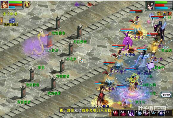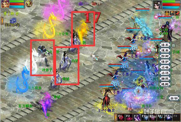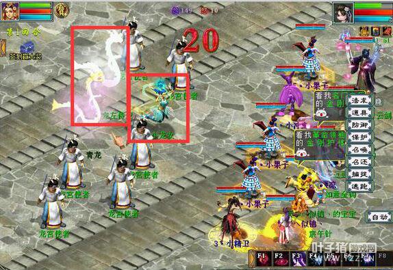 杀完之后,上塔四,这里就出现卓越兄长,简单是兄弟,我选的是卓越的,召唤兽选择三个果子,一个精卫,一个孟极。 杀法:第一回合,进入战斗后,果子分别点龙女(后2),泥巴(前3),木魁(后4)减抗,攻击宝宝点泥巴砍,精卫减主的速度,人物点龙女(后2)抽秒,第一回合应该就能干掉龙女;第二回合,如果三太子回上龙女的血,那就继续点龙女秒,果子减山精(后5)二太子(前4)其他宝宝看着拉自己的法,孟极点三太子砍。 下面上伤害图: