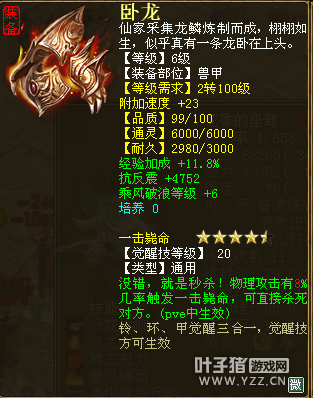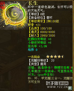 为什么把一击毙命摆在第一位,那是相当的拉风的技能,高手不出手,一出手就是要人命的,只要触发就必须死,域外胖子和孤竹摸鱼人克星,这技能太逆天了,所以开发组设计成只可以和NPC作战有用,机率也是设计的相当低,物与稀为贵,所以价格离谱,我们区有位土豪朋友好几千收了一套。我们来看看是啥样的。如下图: 一击毙命兽环