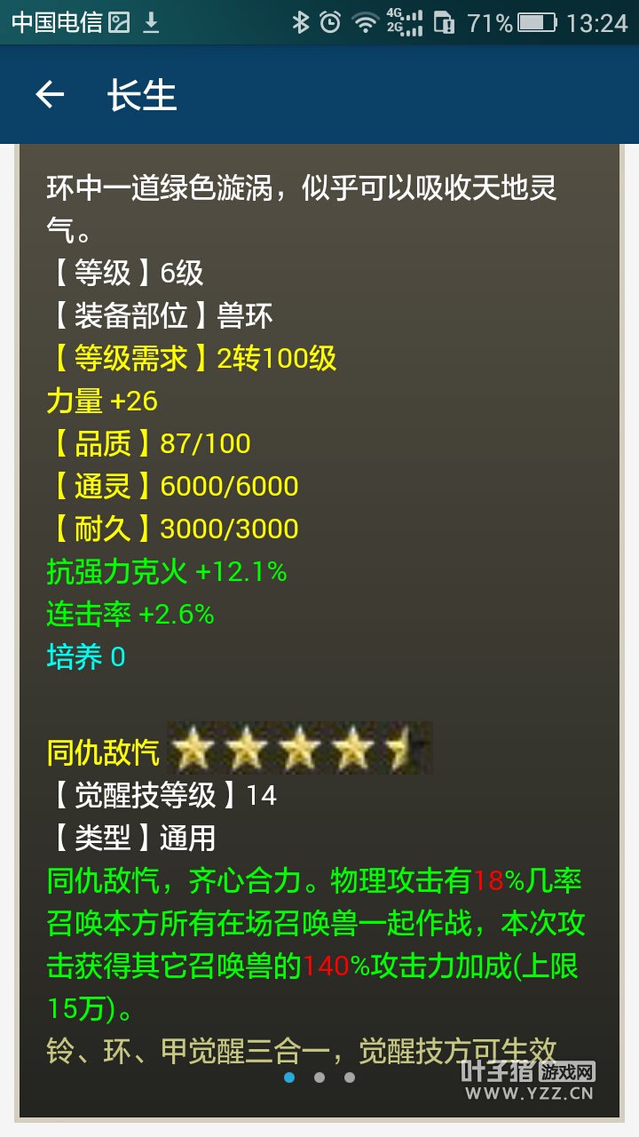 同仇敌忾是有机率让一起参战的宠合击,这个战斗效果很拉风,也很实用,但PK效果不明显,因为PK时参战的宠要不敏宠,要不血宠,所以PK不好用,用的人所以也少。如果是只做任务的可以考虑,好用又便宜。由于培养的人少,所以没找到20级的,只找了个14级的参考下。如下图 14级4*半同仇18机率