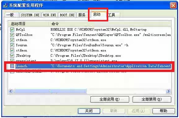 如果是64位的会在C:\Program Files (x86)目录下,Tencent目录下QQMicroGameBoxService\这目录下所有的都删除。 点开始,点运行,输入命令MSCONFIG按回车,点启动,把Launch前面的勾去掉,注意看他提示的文件目录。下面要用到的,点关闭,不要重起。 根据上图给出的地址,把这里所有文件全部删除 然后重起后会跳出一个框打勾就可以了,这样就完美解决问题了。 本人从大话2测试开始玩到现在,也算是骨灰级玩家了,如果您喜欢交流或咨询大话2相关的,可以加我微信zny221005,我拉您进叶子猪微信群,叶子猪微信群一和群二都满500玩家,现在开启叶子猪微信群三有256位玩家了,期待您的加入,大话2有您更精彩! 最后祝大家玩的开心,多得好东西,祝叶子猪网站越来越好! <<<点击进入大话西游2论坛讨论>>> [编辑:米奈]