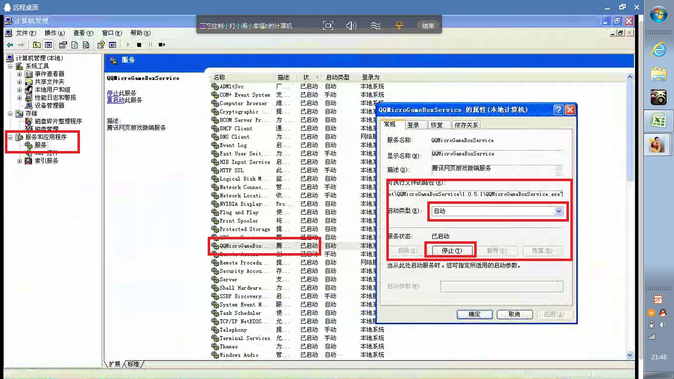在服务里找到一项叫QQMicroGameBoxServicer双击打开,启动类型选禁止,然后点停止。