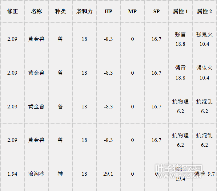 (1)五个黄金兽组合——很黄很暴力组合 优点敏高,完美克木推荐使用者为:3魔2仙、3魔1仙1鬼、2魔2仙1男人 2000SP进战斗——2576SP,增加了四分之一有没有! (2)四黄金、一大浪 优点敏高,完美克木推荐使用者为:2魔2仙1男人 2000SP进战斗——2334SP,牺牲sp,增强了男人的强法。 (3)三黄金兽、二金不换 高克木,建议搭配:风、水法仙2名,敏魔3名 2000SP进战斗——2320SP,牺牲了SP,增强了仙的强法