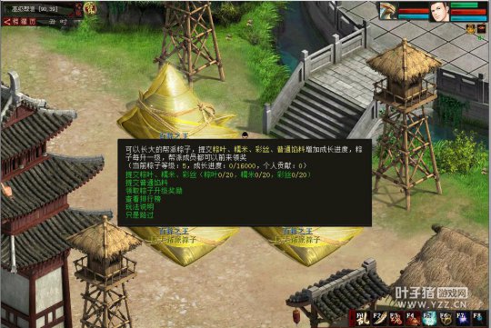 五、百粽之王 1.活动时间 2017年5月27日0:00-2017年5月30日23:59、2017年06月01日全天 2.参与条件 人物等级≥30级,时间宠≥10级 3.活动场景 帮派场景内 4.活动流程 ①回到帮派,找到帮派粽子: 回到帮派,可以看到三个巨型粽子。 随着玩家不断提交材料,粽子可以变化,共有五个不同的级别。 ②提交材料,让帮派粽子长大: 可以通过向帮派粽子,提交粽叶、糯米、彩丝、普通馅料等来增加其成长进度。 粽叶、糯米、彩丝三种材料每日提交上限是20个,每个将为帮派粽子增加1点进度,交满20个后将不能再提交。 普通馅料的提交次数不限,每个将为帮派粽子增加20点进度,但每人每日超过30个后将不再获得经验。 ③帮派粽子升级,领取相应奖励: 粽子每升一级,便会发放一份经验奖励与物品奖励,共有四份奖励发放。 除当天新入帮的玩家外,每个帮派成员都可以领取,但该奖励不会跨天保留,需在23:59前领取完。 另外每日将根据各帮派的提交进度进行排列,排名前三位的帮派将得到限时称谓奖励。