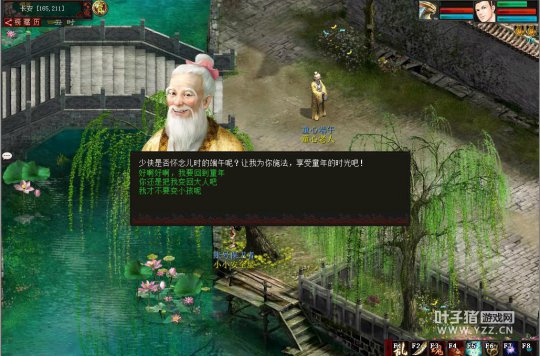 七、童心端午 1.活动时间 2017年06月01日全天。 2.参与条件 人物等级≥30级,时间宠≥10级 3.活动流程 前往长安城(170,217),与那里的童心老人对话,可变身为儿童造型。(每次随机一个养育宝宝的时装造型,可多次更换造型) 在童年状态下,参与2017年端午活动,可享受20%的经验加成,若取消造型变回大人,则不享受加成。 <<<点击进入大话西游2论坛讨论>>>